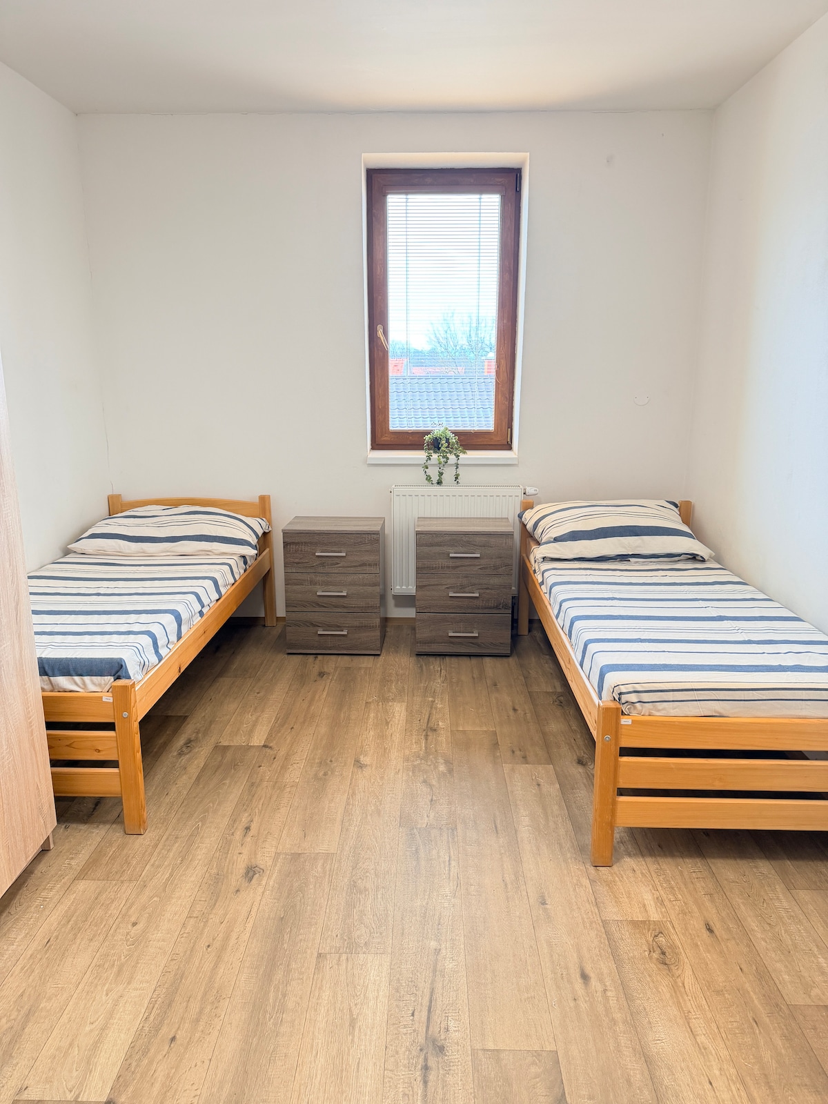 Habitación doble sencilla y acogedora con dos camas individuales separadas. El baño compartido está limpio y ubicado cerca. Perfecto para amigos o viajeros solos. Situado en Mořina, un pueblo tranquilo cerca de Karlštejn, con buenas conexiones de transporte a Praga. Ideal para estancias cortas, excursiones o explorar la campiña checa.