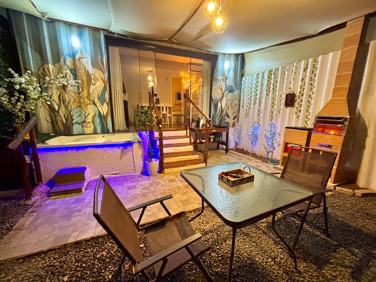 🛁🔥 Refugio romántico en la playa con jacuzzi (hidrospa) climatizado a 36 °C (97 °F), chimenea al aire libre, parrilla para barbacoa y jardín privado, a 5 minutos a pie de mercados, panaderías y restaurantes. La playa de Enseada está a 4 minutos en auto o a 16 minutos a pie. Ideal para dos adultos con un bebé. Consulta los detalles 👇 ❤️ Opcional: decoración romántica, fotos en el anuncio (ponte en contacto conmigo para obtener más información). 🎂 Las decoraciones de cumpleaños son gratuitas; por favor, coordínalas en el chat.