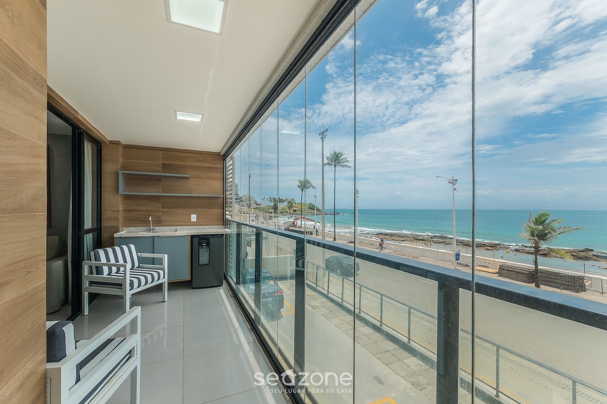Un apartamento en frente a playa de Barra, a pocos minutos del Faro y cerca de los principales atractivos turísticos de la ciudad. El piso dispone de una terraza privada totalmente integrada en el salón, con jardín, tumbona y ducha para los días soleados además de una decoracíon muy cuidadosa. Dentro de un edificio nuevo y bien equipado, está muy cerca de una excelente red de servicios y ofrece una vista privilegiada del circuito de Carnaval. Ideal para parejas o grupos de hasta 4 personas.