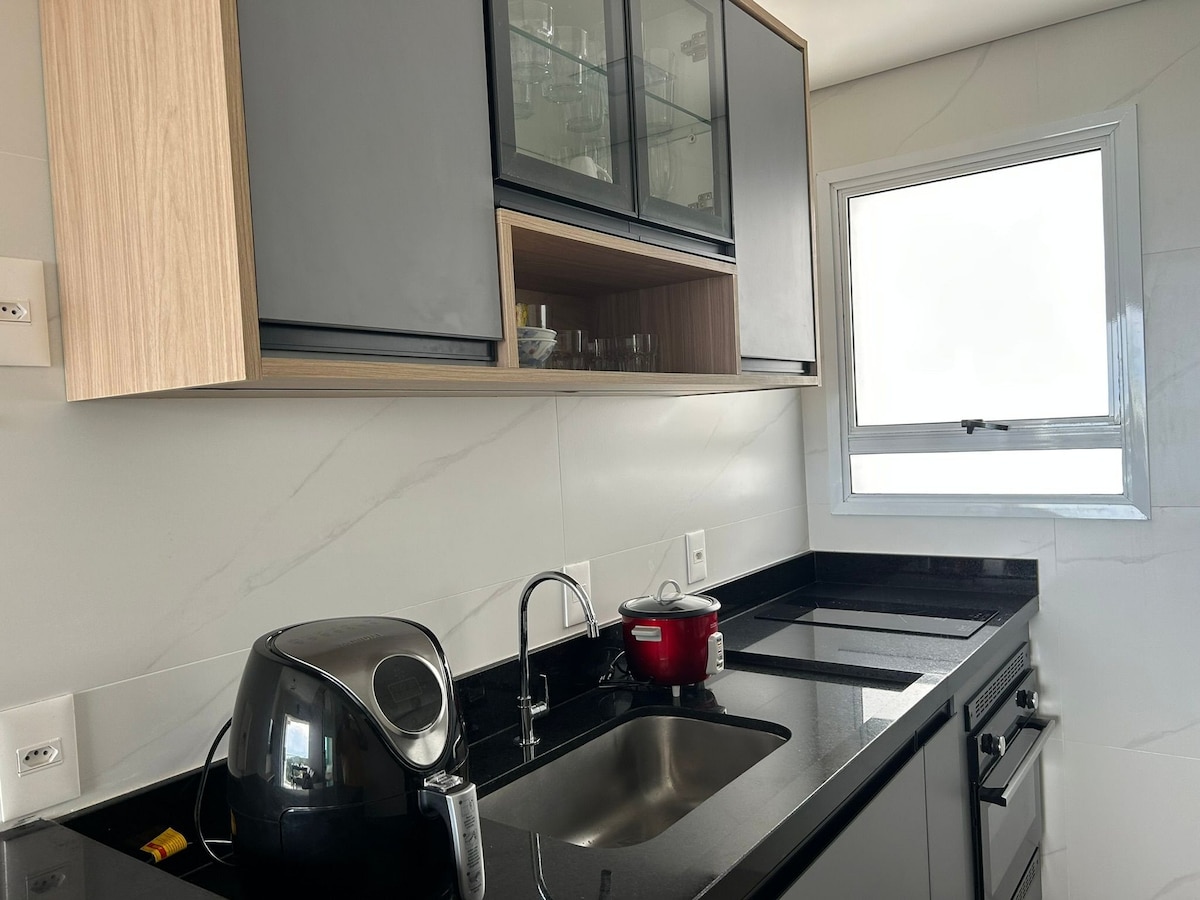Increíble apartamento en un edificio nuevo, con una decoración sofisticada y funcional. Nuestra casa en invierno que ofrecemos a los huéspedes en verano. Aire acondicionado split. Wifi de 240 Mb. TV de 60" en la sala de estar y de 35" en las habitaciones. Cocina, horno eléctrico, microondas. Nevera y congelador. Cocina y despensa totalmente equipadas. Lavavajillas, lavadora/secadora. 1 suite con cama Queen y un dormitorio con baño y dos camas box. Balcón gourmet cerrado con vidrio, con parrilla y nevera extra para bebidas.