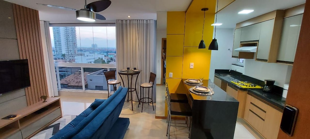 Apê novo, quadra da praia, piscina e climatizado.