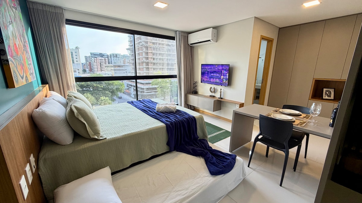 ¡Ven y disfruta de nuestro Apê 518 en Maceio! Con 1 dormitorio, 1 baño, aire acondicionado tanto en el dormitorio como en la sala de estar, y un sofá cama en la sala de estar, es el lugar perfecto para alojarse en Maceió. El balcón ofrece una vista increíble del mar, y la ubicación céntrica es todo lo que necesitas. En el edificio encontrarás una piscina en la azotea con un borde infinito, un gimnasio bien equipado, un divertido espacio para niños, lavandería, alquiler de bicicletas y un práctico minimercado. Nuevo: ¡Cocina con Airfryer! ✨