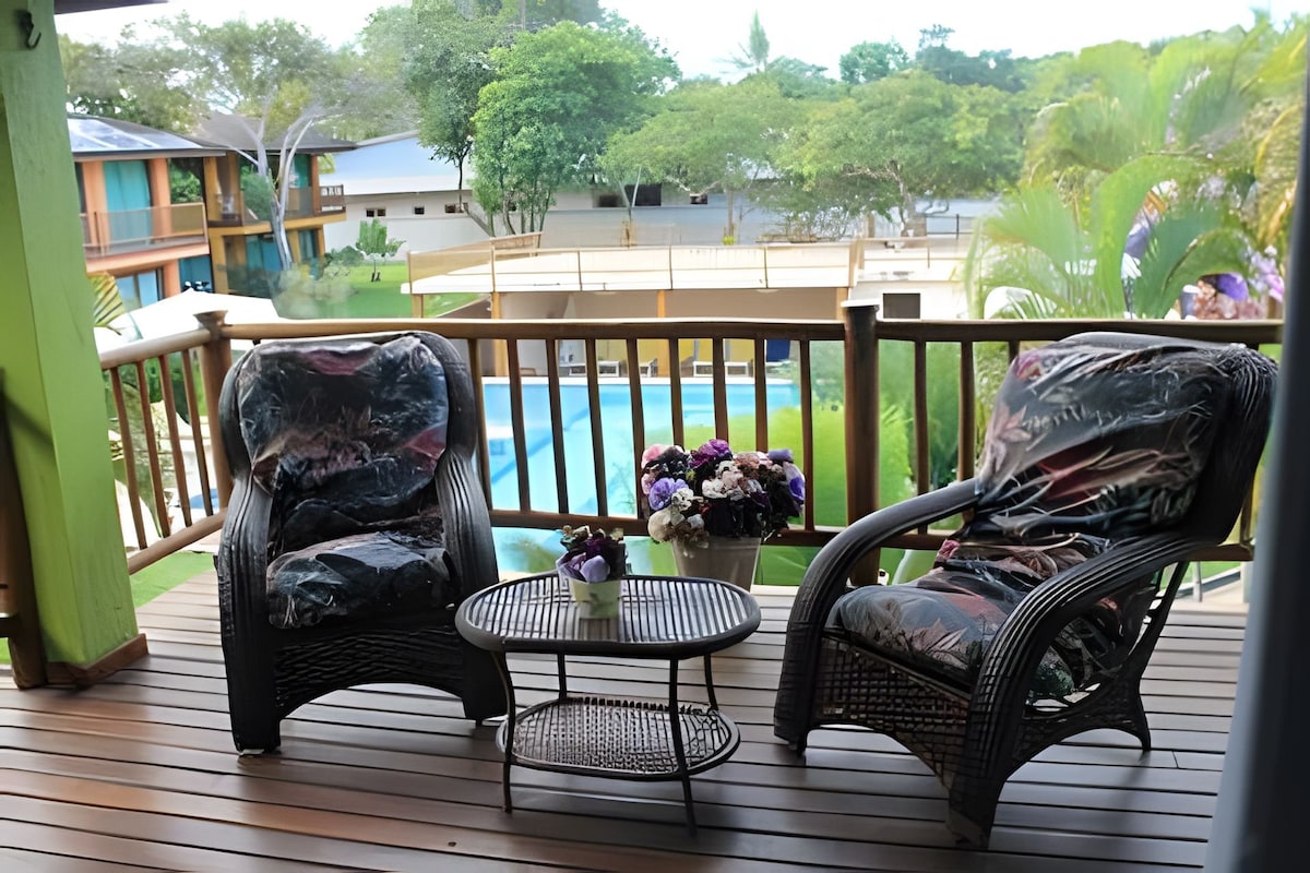 Endereço: Rua da Falésia 100, Alto da Pitinga - Arraial D'Ajuda Estamos a 2 km do centro e 1 km das principais praias. Recomendo ir de carro ou alugar, táxi é caro. Localizado no Monte das Oliveiras, condomínio fechado, seguro com portaria 24 horas, lindo paisagismo, academia climatizada, sauna e uma piscina fantástica (Não é aquecida). Flat térreo de 50 m2 com área privada com churrasqueira, 1 suíte com ar, sala com ar, smarts tv, sofá cama, 2 banheiros, cozinha e 1 vaga de garagem.