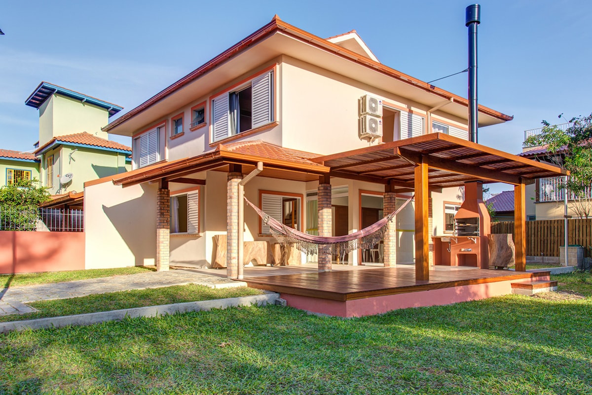 La casa tiene aire acondicionado en la habitación superior, se encuentra a pocos pasos de la playa de Campeche Sul, a menos de dos minutos a pie, ¡ideal para aquellos a los que les gusta ver el amanecer en el mar! ¡Aquí se puede dar un paseo por la playa incluso antes de desayunar! Cuenta con 2 habitaciones amplias y luminosas, dos baños, una amplia sala de estar y terraza con barbacoa. Situado en la región de Lomba do Sabão