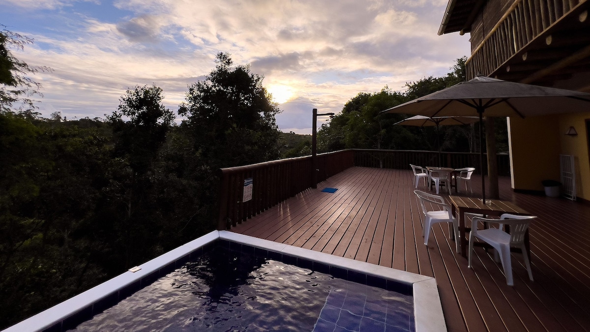The flat is in a condominium to 1400m from the center of the charming village of Arraial D’Ajuda and 1 km from the warm and calm waters of the Pitinga beach. The location is perfect for those looking for tranquility and nature integration without losing the downtown amenities and night life. There are swimming pool, sauna, barbecue kiosks with tables in front of the pool. There is access to the beach through an ecological trail passing by the cliff where we can enjoy a fabulous view.