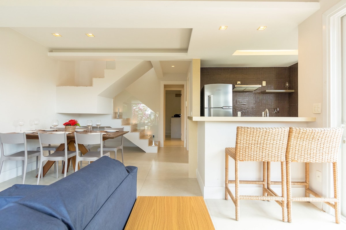 Excelente casa en un condominio familiar, a 300 m de Rua das Pedras y Orla Bardot. Ubicación estratégica, cerca de las playas de Forno, Ferradura y Brava, y a solo unos pasos del centro y de la Rua das Pedras. Casa con 2 baños y 1 dormitorio, todos con aire acondicionado y ropa de cama. Sala de estar en 2 ambientes amplios y acogedores, cocina americana con electrodomésticos nuevos, zona exterior con parrilla y zona zen arbolada. El condominio tiene 2 piscinas, un sauna, un gimnasio, una sala de juegos y una zona boscosa.