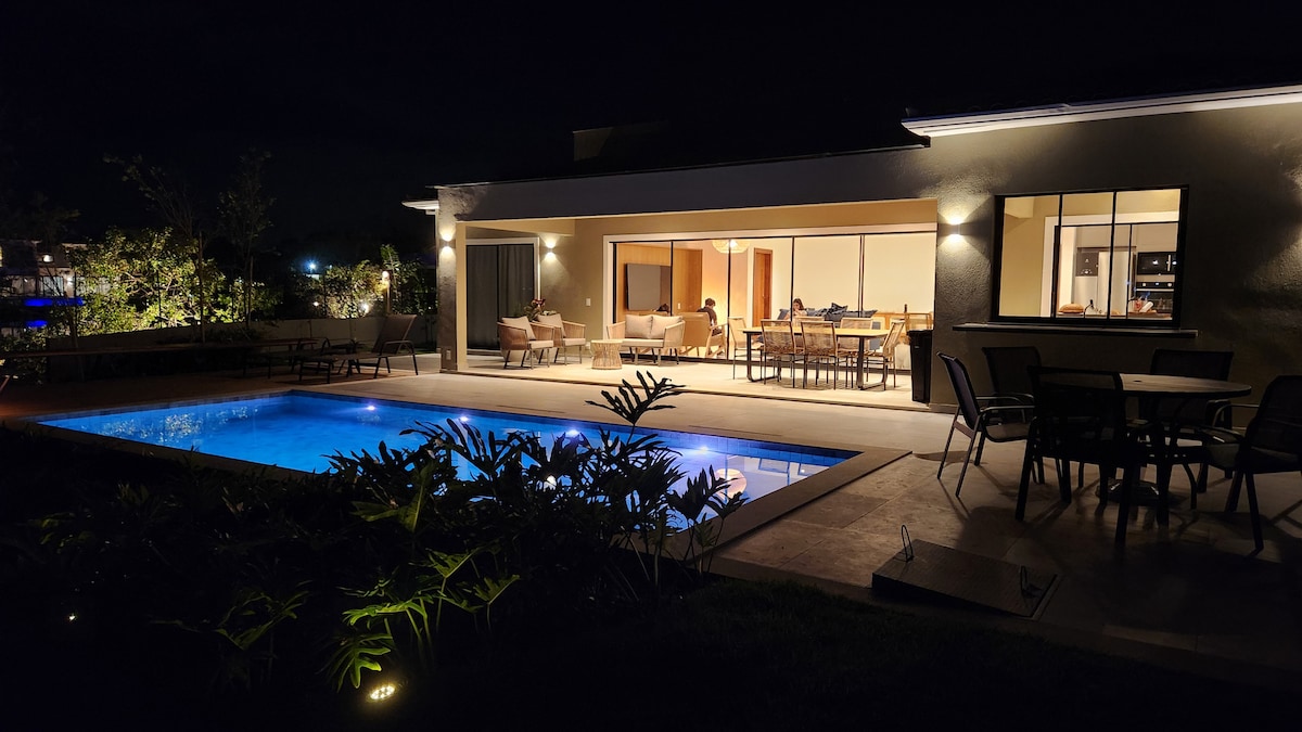 La casa es muy agradable. Es muy luminosa y aireada. En ella hay 4 amplias suites bien decoradas con ventilador y aire acondicionado split. En las dos suites con cama Queen hay secador de pelo en los baños. Hay un altillo con un sofá cama, salas de estar y comedor, una acogedora cocina americana con estufa en forma de isla, 2 balcones y una terraza con vistas a un maravilloso jardín. Hay 3 plazas de aparcamiento. ¡El condominio es maravilloso! Hay una gran piscina con cubierta húmeda y raya para nadar.