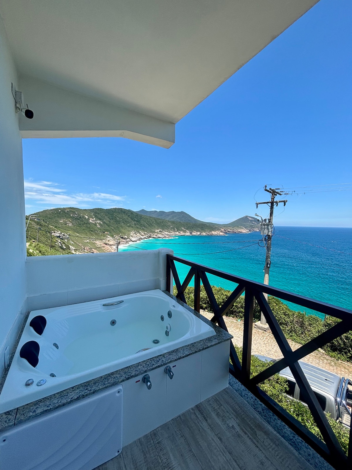 Com 36m², este aconchegante loft fica de frente para a belíssima Prainha e acomoda até 4 pessoas com conforto. A vista para o mar azul-turquesa de Arraial do Cabo é simplesmente encantadora. O espaço oferece uma cama de casal, sofá-cama (casal), banheiro privativo e uma copa equipada com eletrodomésticos (sem fogão). Perfeito para relaxar e aproveitar a praia com conforto e praticidade!