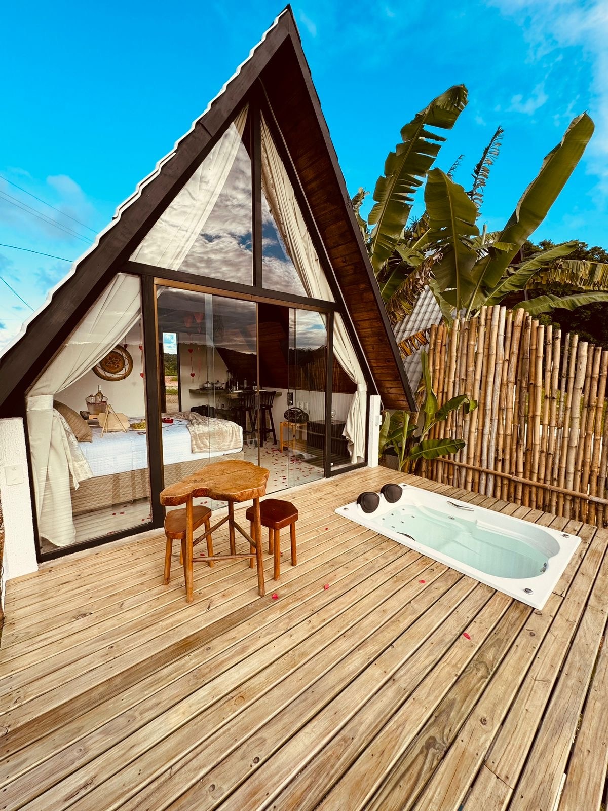 Bem-vindo (a) ao Rancho Navarro, situado em uma localização privilegiada próximo à deslumbrantes praias. Nosso rancho oferece uma experiência única de hospedagem, onde você pode desfrutar da tranquilidade da natureza e da proximidade com o mar. Os hóspedes podem relaxar em aconchegantes cabanas A-Frame, cercados por belas paisagens naturais. Venha se desconectar da rotina, uma experiência única de hospedagem aguarda você! Temos serviços de decoração romântica. (Consultar mais serviços)