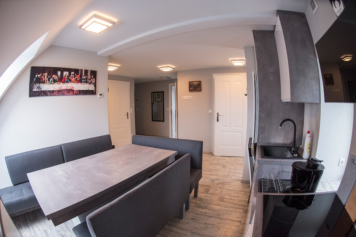 Un departamento grande ubicado en el centro, pero en una parte más tranquila con dos dormitorios de tamaño completo ( en cada cama 200x160), una gran sala de estar con una esquina plegable, un televisor inteligente de 55 pulgadas con WIFI + TV y un balcón con vistas al horizonte de la ciudad y a Jasna Góra. Un baño con bañera o una ducha con toallas y una secadora. Cocina totalmente equipada (nevera grande, estufa con horno, lavavajillas, hervidor de agua, jarra de agua, tostadora, platos, todos los utensilios de cocina).