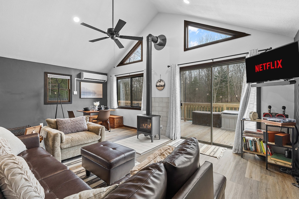 Escápate a la cabaña Black Birch, un refugio elegante y romántico diseñado para parejas. Ubicada en el corazón del bosque, esta acogedora cabaña ofrece la máxima privacidad con un jacuzzi privado, un pozo para encender el fuego y un entorno forestal sereno. Perfecta para relajarse juntos, ya sea observando las estrellas junto al fuego, jugando a juegos de mesa, disfrutando del ambiente tranquilo o simplemente reconectando. La cabaña Black Birch te invita a relajarte, recargar las pilas y crear recuerdos inolvidables en un entorno verdaderamente mágico.