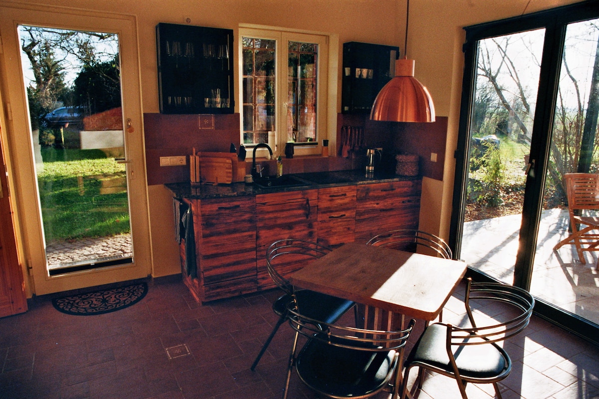 The Rooms with a View apartment sits with unobstructed views of the Havel River and Naturpark Westhavelland, a nature reserve and bird sanctuary. The 45m² apartment sleeps three comfortably, the two front rooms have windows overlooking the river, and the entire apartment is decorated with original artwork, including handmade quilts and hand-knotted rugs. Full kitchen, toilet with shower, private entrance, & more. Beach, 150m away, full use of garden.