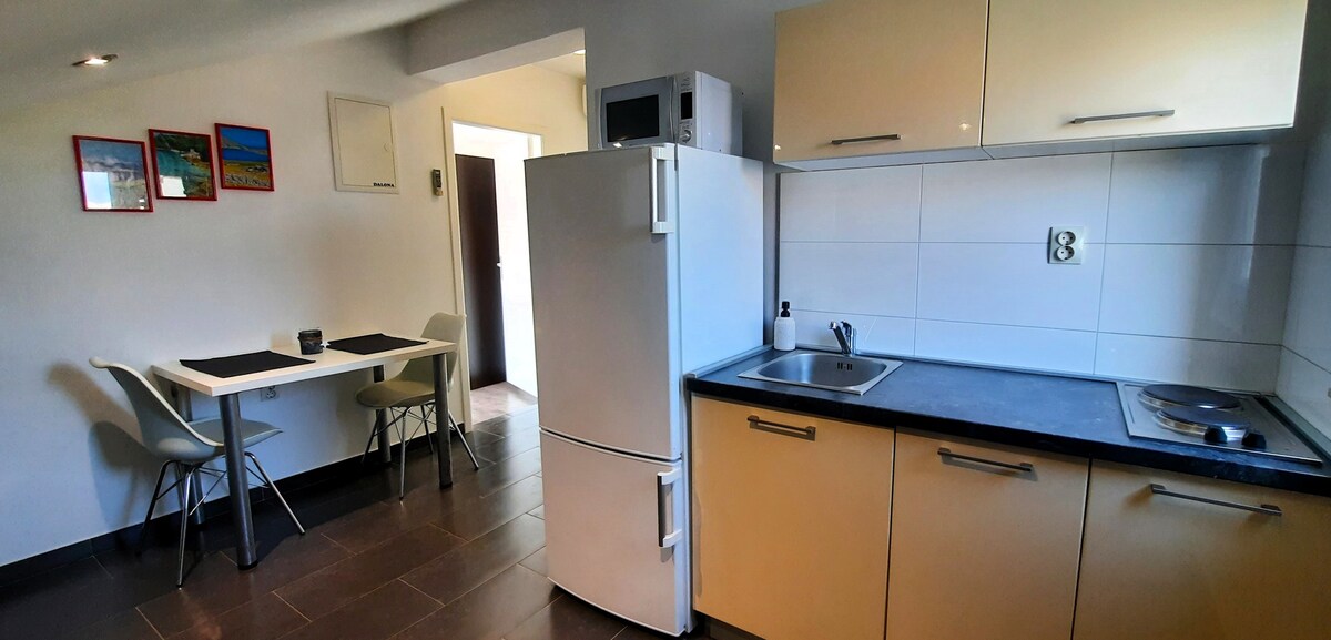 Apartamento totalmente equipado de 40 metros cuadrados en la planta baja, en una casa a 30 m del mar. El apartamento consta de cocina con comedor y sofá, un dormitorio con doble malo, baño y espacio abierto frente al apartamento (junto al mar ). Equipo: cocina, nevera, microondas, aire acondicionado, TV con canales SAT, Wi-Fi. Patio compartido con chimenea para barbacoa .