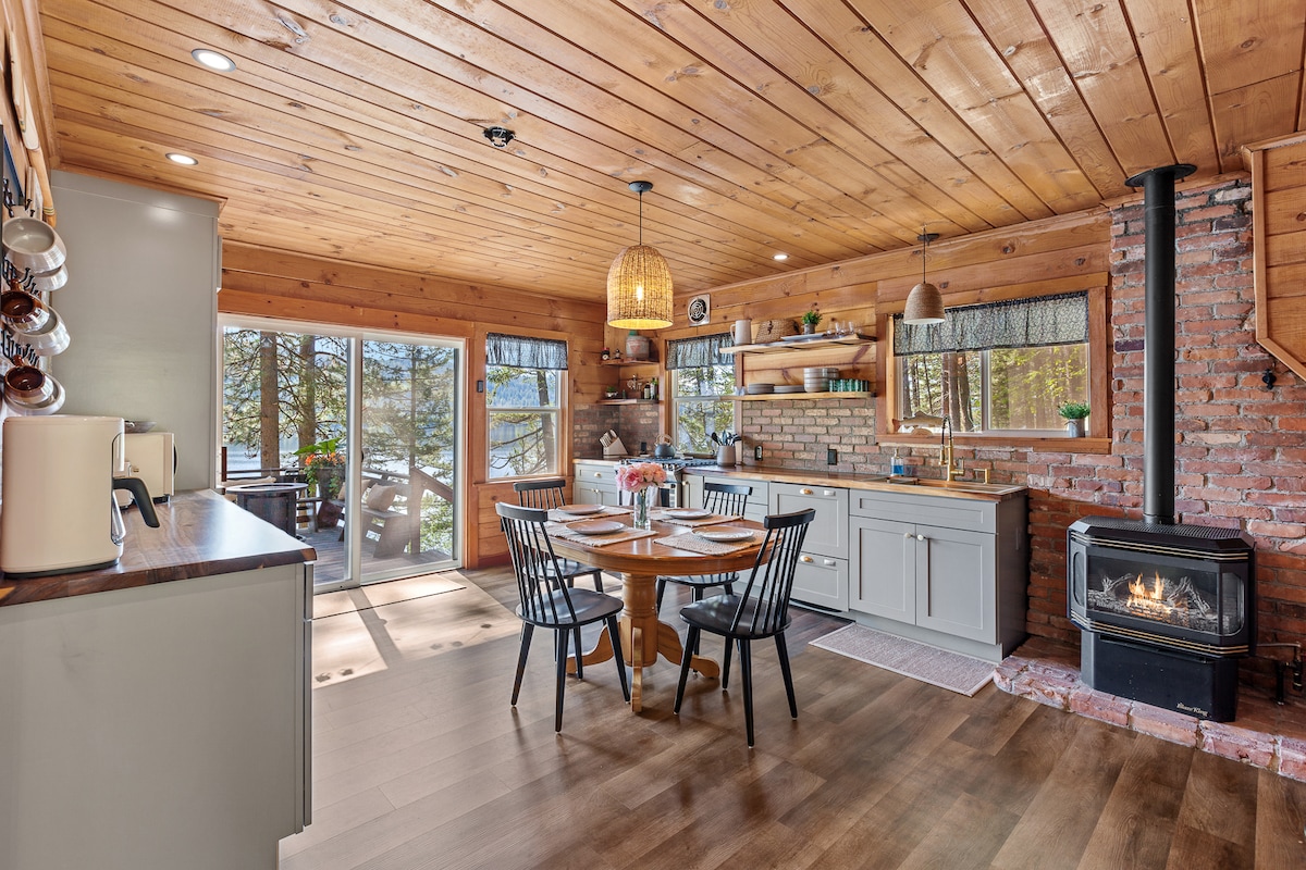 Lake mornings on the dock. Evenings by the fire-pit under a sky packed with stars. Welcome to your private, year-round hideaway on the glassy shores of Lake Cocolalla. • Walk-out waterfront with sandy beach, private dock (installed June–Sept), • Two separate sleeping spaces (Cabin and bunkhouse) • Fully stocked kitchen and outdoor eating • Fast Wi-Fi, Smart TV, Bluetooth sound system. • Yard Games, hammock, fishing + paddleboarding • Superhost property with nearly perfect reviews (4.96★).