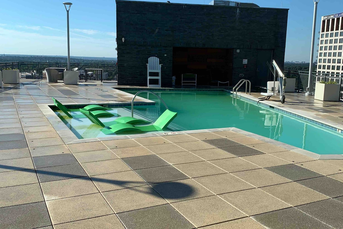 Ven y disfruta del hermoso corazón del centro de Silver Spring. A solo unos segundos del metro, el edificio está convenientemente ubicado en Georgia Ave, a pocos segundos de Silver Spring Mall, teatros, restaurantes y a pocos kilómetros del centro de DC. Disfruta de una vista increíble de la ciudad con ventanas del suelo hasta el techo. Relájate en la hermosa piscina en la azotea, el lujoso sky lounge, el patio y disfruta de nuestro gimnasio con vistas a la ciudad. Experimenta una estancia inolvidable en una suite de dos dormitorios y dos baños y servicios de primera línea.