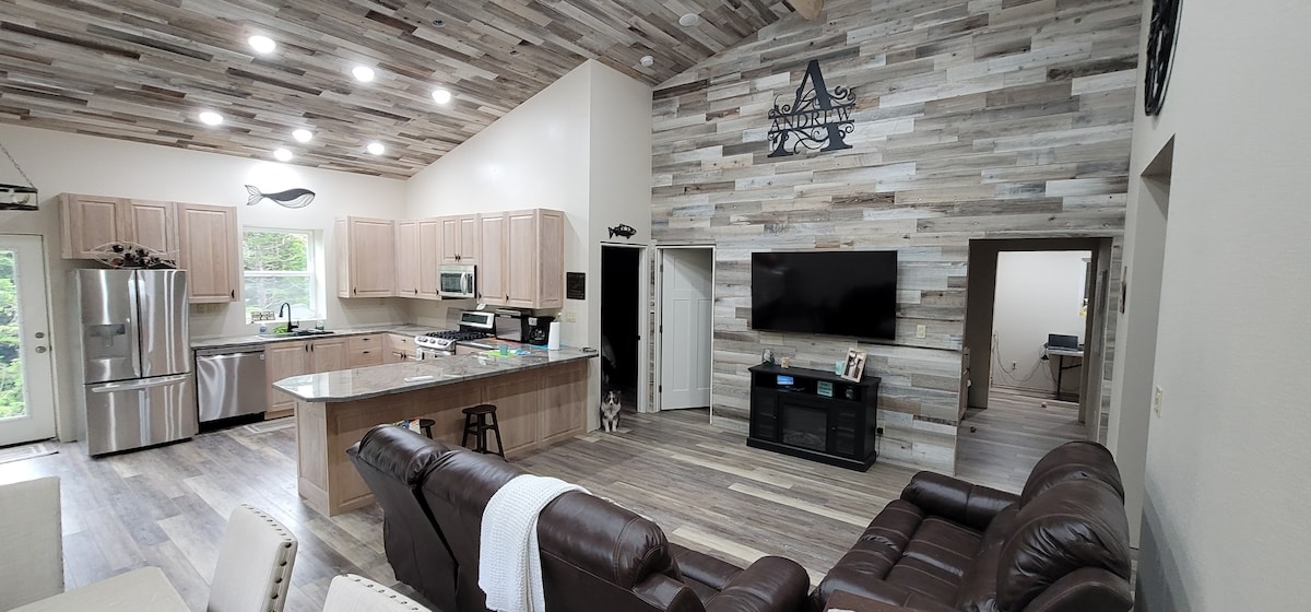 Crea recuerdos con tu familia en esta casa única y querida enclavada entre los árboles en el barrio de la costa norte de Ketchikan. Esta acogedora cabaña de madera se encuentra a lo largo de una unidad privada aislada en un entorno natural tranquilo, y cuenta con una remodelación reciente con muebles nuevos, enormes terrazas envolventes, 4 dormitorios, 2,5 baños y está completamente equipada con todas las comodidades para dar la bienvenida a tu familia o grupo grande.