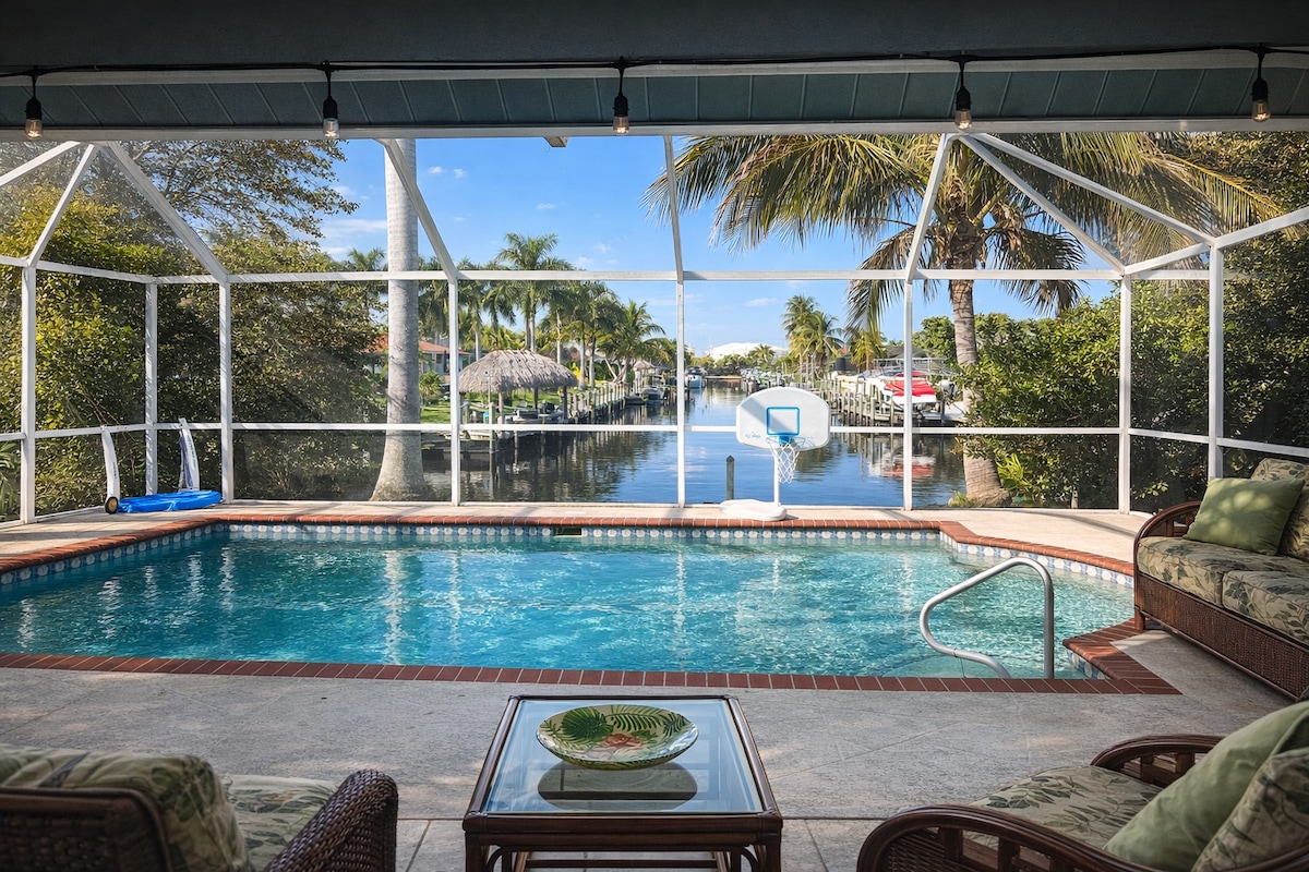 Tropical poolside retreat with views of the sunset on a canal. Cozy home with views of the lanai with a private pool from almost every room. The hot tub and pool with a sitting area, overlook the canal with a clear unobstructed views. Go fishing right in your backyard in the salt water Canal with gulf access. Bike or walk to the nearby riverfront park. ( 3 bikes and fishing poles available) {{{DISCOUNT FOR MORE THAN ONE MONTH}}} Discount given upon inquiry.