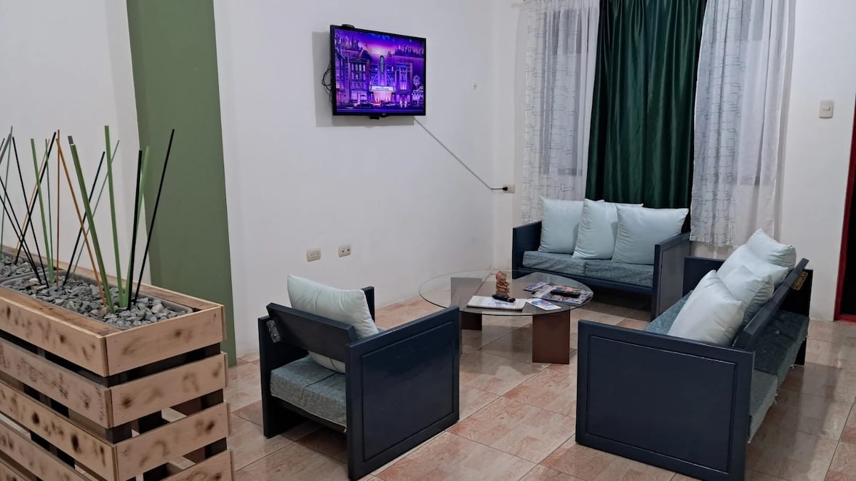 ✨ El espacio Departamento en segundo piso con acceso independiente. Cuenta con 2 habitaciones con cama doble, sofá cama en sala, TV en cada ambiente, comedor y cocina equipada. ✨ Ubicación En pleno centro de Sigsig, cerca de la plaza, comercios y restaurantes. ✨ A tener en cuenta El baño se encuentra junto a la entrada del departamento.