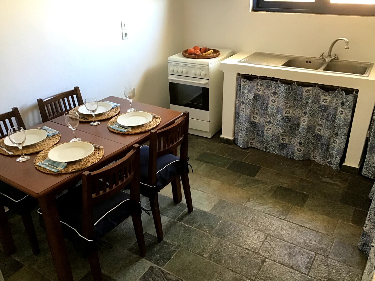 Freshly refurbished studio in Armenistis, located in the historic centre of the village and next to the villages beach. Supermarket, restaurants and everything you may need are walking distance. Wifi, air condition and a fully equipped kitchen are making this a perfect vacation place. As my family has there own gardens and chicken, we will supply with some fresh goodies to accompany your meals.