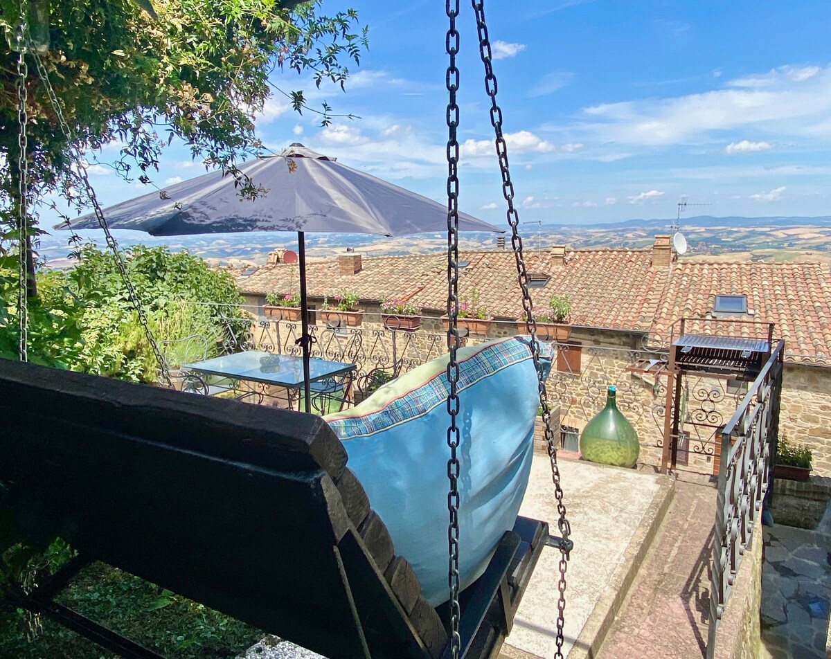 Un alojamiento completamente independiente recientemente remodelado, desde el diseño hasta el mobiliario, directamente por el anfitrión. Se compone de una sala de estar con una cocina totalmente equipada y un dormitorio con baño. La peculiaridad de la propiedad es la ubicación extremadamente favorable en el centro histórico, con una espléndida terraza con jardín panorámico en la Val d'Orcia, con barbacoa, hamaca, lavabo y ducha exterior.