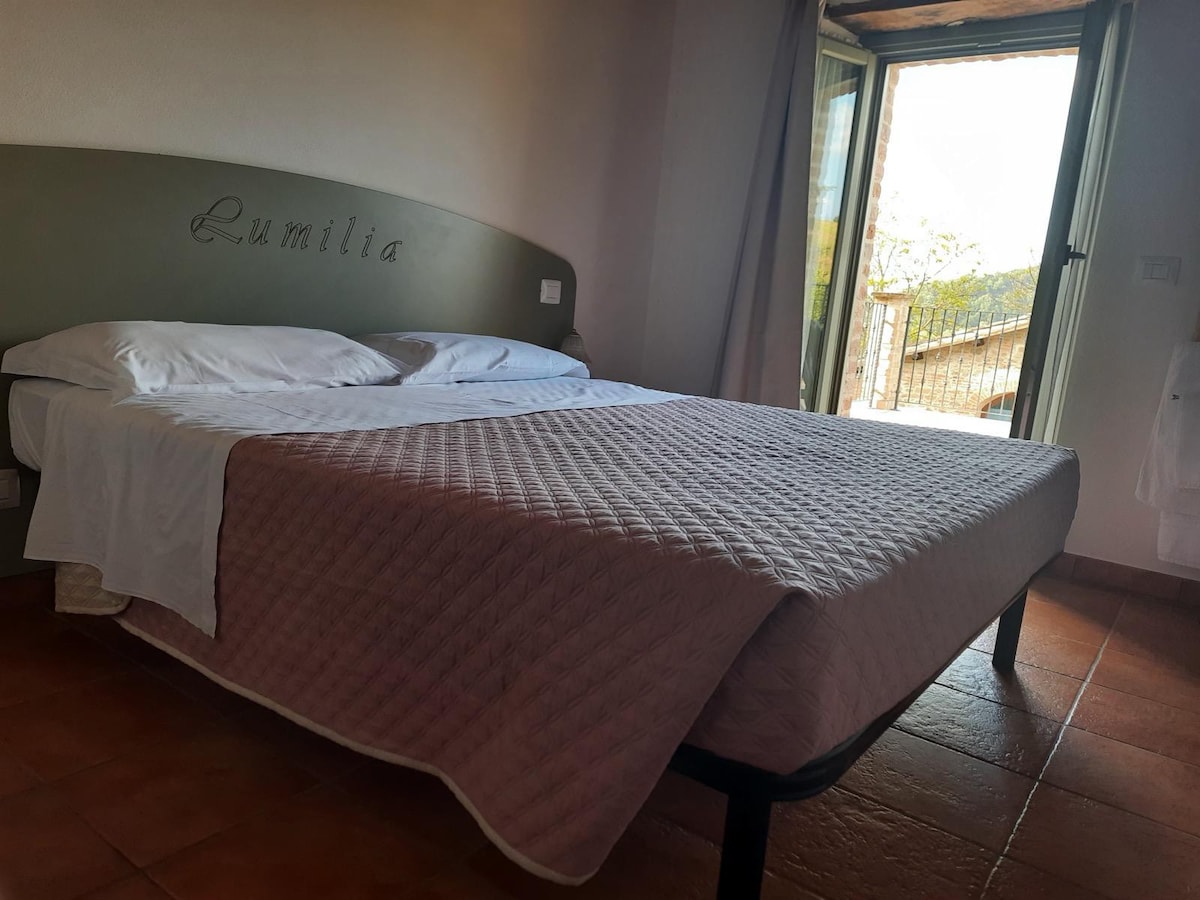 Sibilla es una habitación cuádruple espaciosa y elegante, marcada por la pared con piedra expuesta.