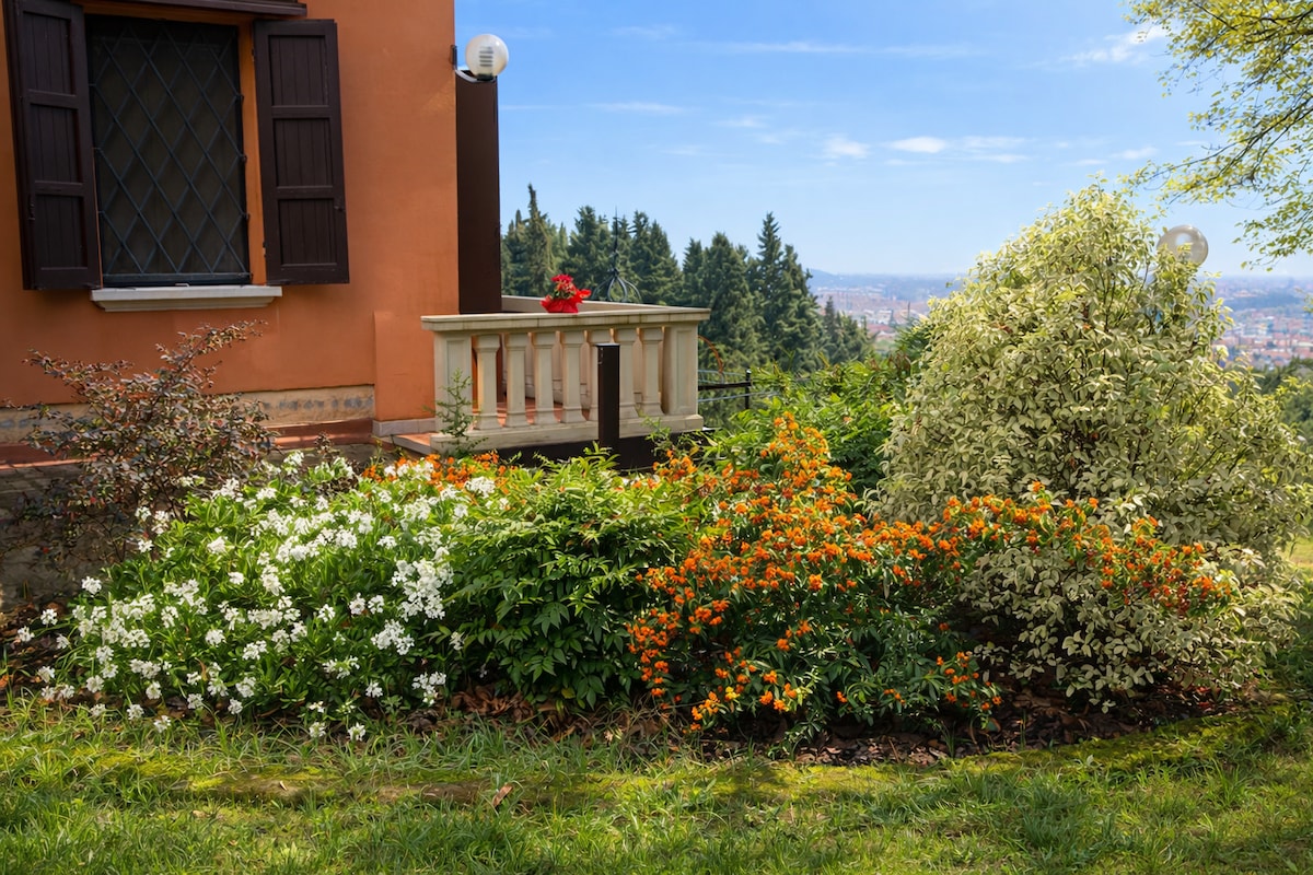 Debajo del Santuario de San Luca, en el distrito de Saragozza, cerca del Arco Meloncello. Elegante apartamento ideal para 2 huéspedes: dormitorio doble, cocina y cómodo sofá cama para huéspedes adicionales. Está a solo unos pasos del centro de la ciudad, puedes llegar caminando por Saint Luca 's Arcades o en autobús. La parada de autobús está justo enfrente del apartamento.
