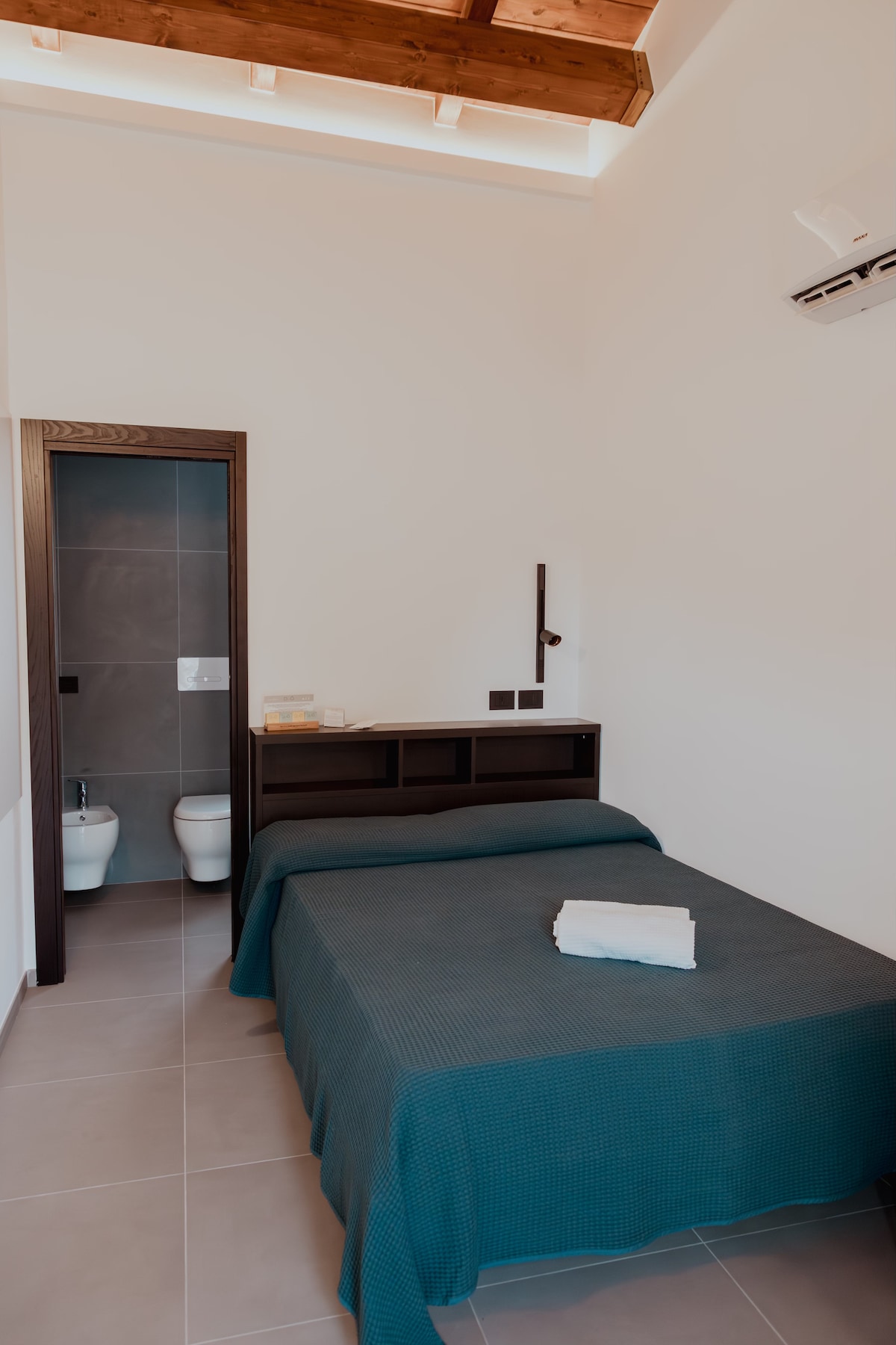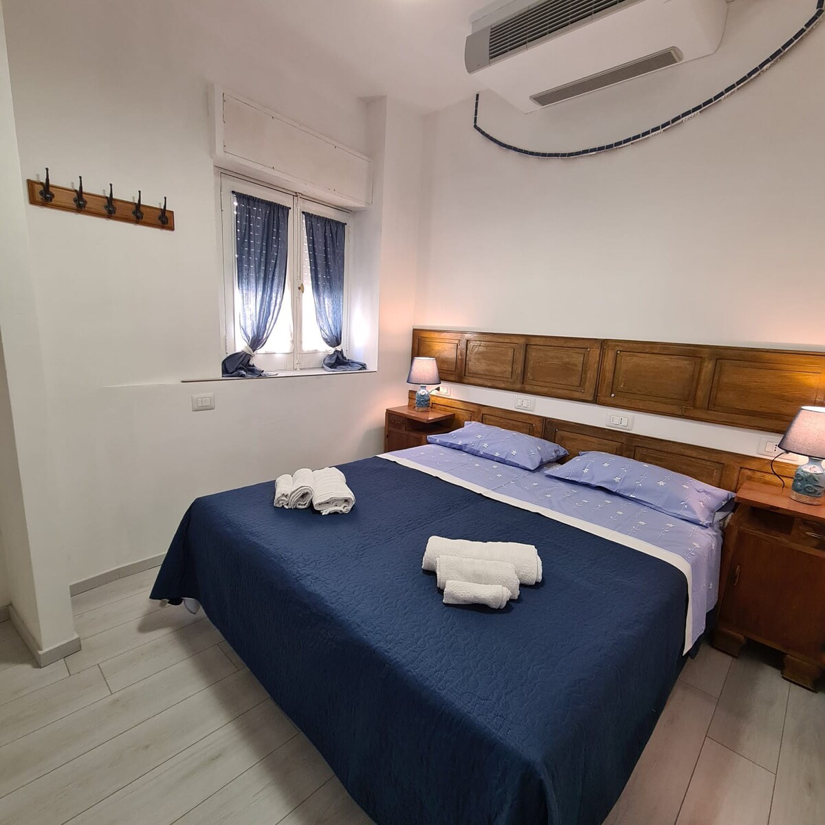 La camera matrimoniale offre un ampio terrazzo privato . Dispone di ingresso esterno autonomo, bagno interno privato con doccia, climatizzatore, cassetta di sicurezza e mini-frigo. Il terrazzo, con vista mare laterale, è attrezzato con sedie e tavolino, garantendo agli ospiti un ampio spazio esterno privato.