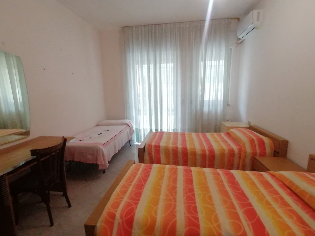 La nostra casa di famiglia di origine. L'appartamento è caratterizzato dalle belle cementine originali: è luminoso, fresco, ventilato, ben arredato e accessoriato. Comodo e tranquillo, con ampio e fruibile balcone a di 5 mq, vista e posizione esclusiva ed incantevole. Pratico parcheggio esterno, non custodito ma sicuro (caserme Loc.Pol/Carab), a 100 mt. Il cuore del paese con negozi, markets, bar e ristoranti è raggiungibile a piedi in meno di 5' e le spiagge, in auto, in 15'.