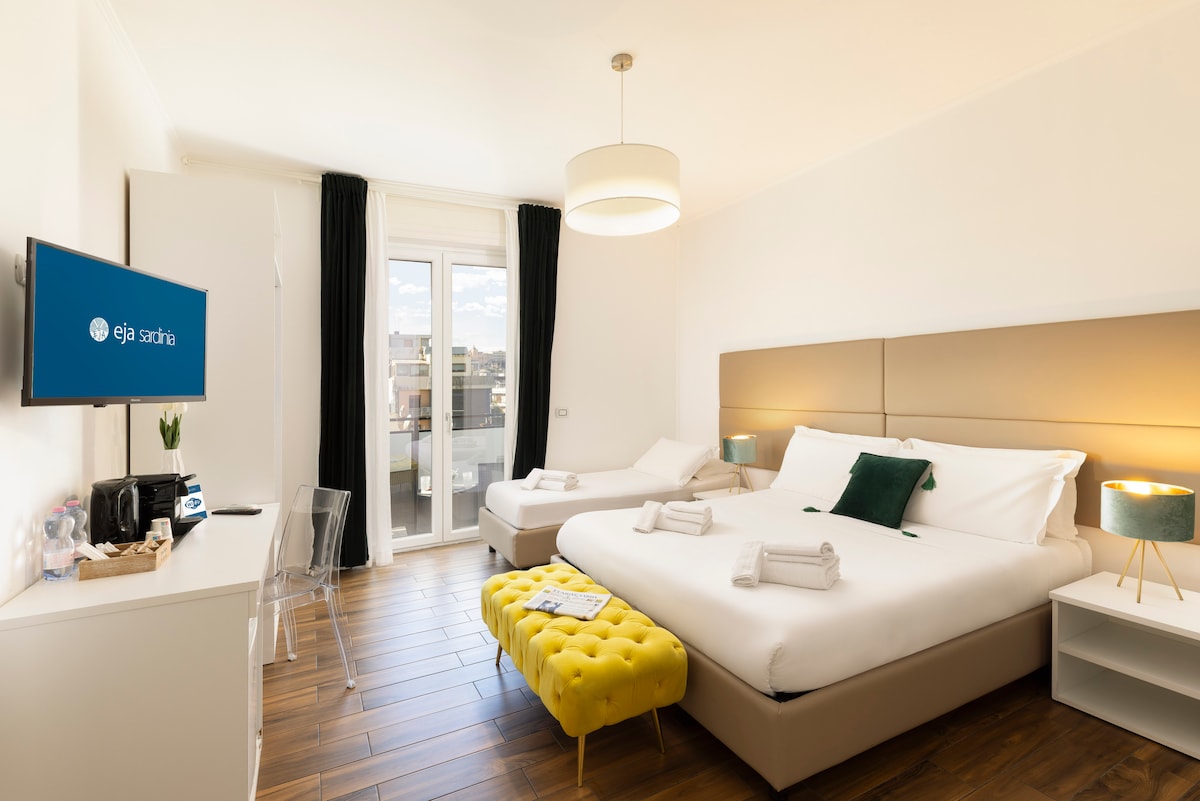 Habitaciones con un diseño refinado y un ambiente único, equipadas con todas las comodidades, vestidor y baño privado. Los huéspedes tienen a su disposición una zona de entrada común estudiada hasta el más mínimo detalle. La ubicación es muy céntrica, dentro del antiguo barrio histórico de la Marina, entre el puerto de Cagliari y el barrio de Castello. A pocos pasos se puede disfrutar del patrimonio histórico y religioso, ir de compras y sentarse a degustar productos típicos en uno de los muchos restaurantes de la zona.