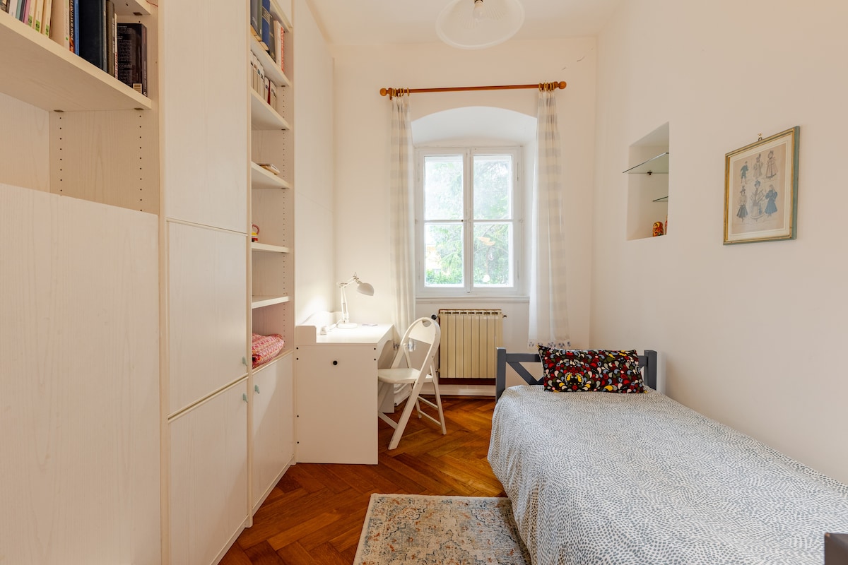 La villa, construida en 1806, está rodeada de vegetación; el apartamento da al jardín y está amueblado con muebles de la era austrohúngara de Trieste: para un viaje a Trieste, tiene la oportunidad de experimentar el ambiente adecuado aquí para comprender mejor la ciudad y su historia. A pesar de la ubicación muy tranquila, en 10 minutos se puede bajar al céntrico Borgo Teresiano a través de agradables callejones peatonales. Se reserva una plaza de aparcamiento en la calle para el coche.