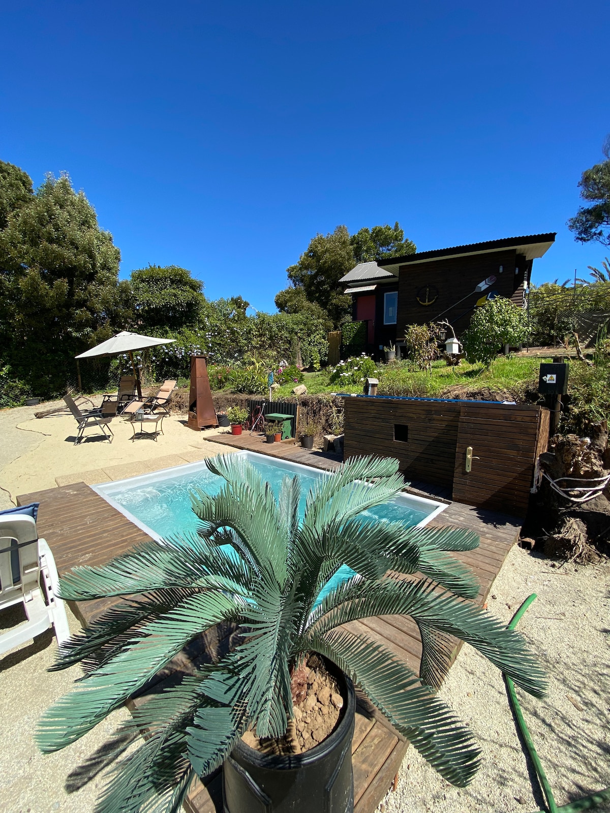 A minutos de las playas de Quintay y Tunquén, a 1.5 horas de Santiago, es este hallazgo perfecto para parejas que buscan relajar, recargar, celebrar, y divertirse. Su reserva incluye la casita, la tinaja exterior climatizado, y el "quincho". Ofrecemos tablas de comida para disfrutar debajo las estrellas mientras relajan en la tinaja y servicio de desayuno tbn con aviso previo. Hay más de 60 comodidades modernas de calidad, está bien equipada, muy limpia y luminosa, con una estética encantadora.