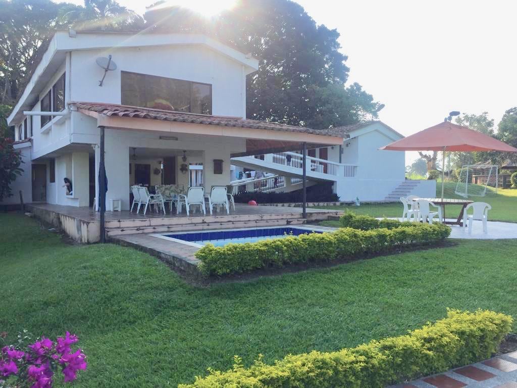 Tu familia estará cerca de todo cuando te quedes en este alojamiento céntrico en el PAISAJE CULTURAL CAFETERO, sobre vía principal de santagueda puedes ir caminando a la fonda , supermercados , café , restaurantes y sitios turísticos del lugar , la casa es espaciosa con un gran lote donde los niños pueden jugar , podrás disfrutar de una piscina de 84 metros cuadrados con espejo de agua con el mejor clima de Colombia a 30 minutos de manizales , incluye 4 camas y 1 sofá doble somos petfriendly.