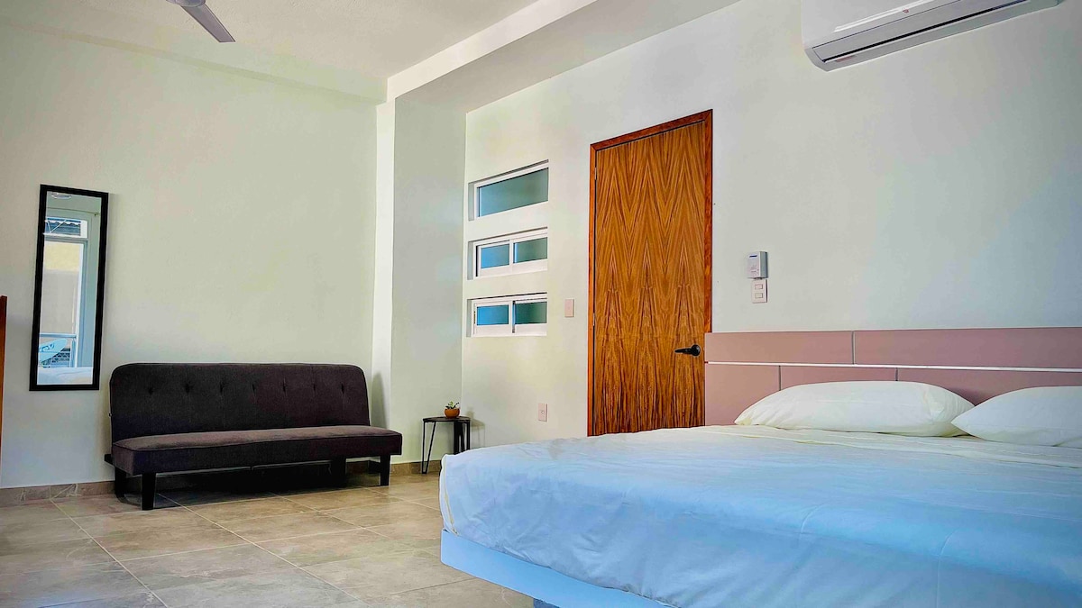 Genial y fresco apartamento en primer piso con cama king size, baño con agua caliente, A/C, espacio para trabajar y una cocina rústica privada y open-air totalmente equipada (refrigerador, cafetera, licuadora y más) en una terraza con hamaca. Súper bonito y cómodo, en el corazón de Puerto Escondido🌴 Conexión a internet de fibra óptica (mínimo 20 Mbps) de Telmex y Starlink. ¡Ideal para trabajar en línea!🛜 En El Jardín contamos con 15 diferentes alojamientos, por si deseas ver otras opciones.