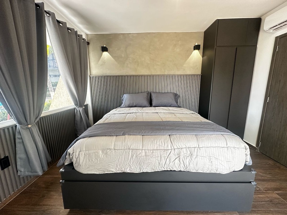 Este apartamento está en mezanina, solo hay que subir 5 escalones y llegas al apartamento, es para 2 personas más 1 adicional ya que cuenta con sofá cama, se encuentra a pasos de la playa, tiene una ubicación genial, ¡será muy fácil planear tu visita! Cuenta con 1 habitacion y 1 baño, tiene agua las 24 horas del día ya que el conjunto cuenta con pozo subterraneo, aire central, tienes tostadora, airfrayer, mini hornito. Querrás venir una y otra vez. super recomendado.