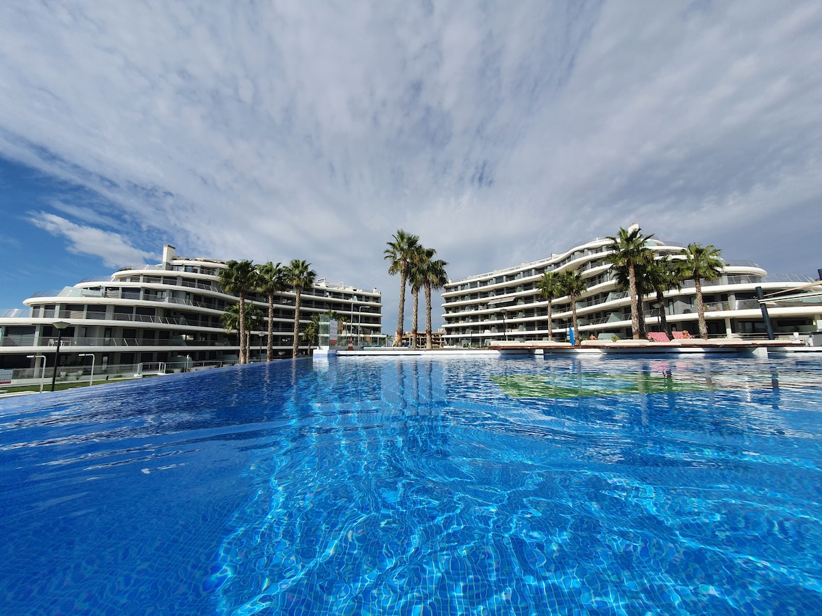 El apartamento está junto al mar (la terraza de más de 50 m2 ofrece una vista directa ilimitada al mar) y forma parte de la lujosa residencia Infinity View (con 3 piscinas, 3 jacuzzis, gimnasio, sauna, baño de vapor, parque infantil, canchas de tenis, pádel y baloncesto). Una piscina y 2 jacuzzis están climatizados durante todo el año. Acabado completo y lujoso y plaza de aparcamiento (número 6B). Puedes evitar las escaleras a la playa utilizando un ascensor hasta el nivel de la calle.