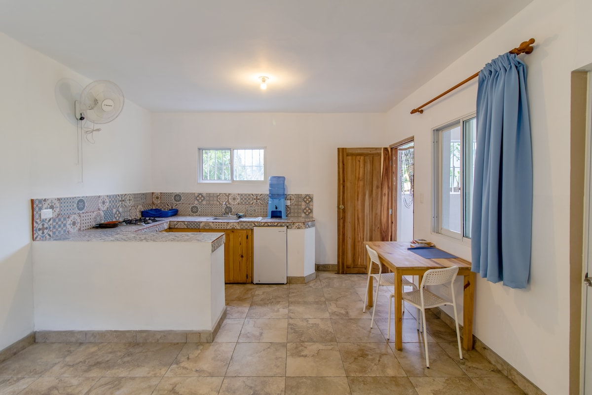 En el centro de Cabarete y a solo 2 minutos a pie de la playa. Te ofrecemos un pequeño loft sencillo y cómodo con sala de estar/comedor/cocina y entresuelo con cama y escritorio. Perfecto para personas que les gustan los deportes acuáticos o el trabajo remoto, para solteros o parejas.