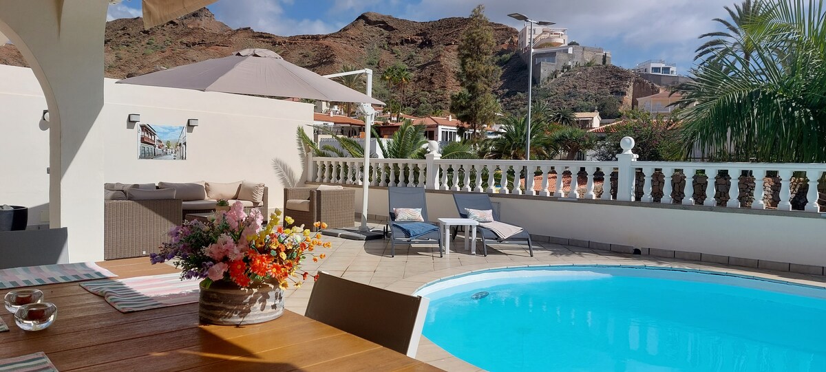 ¿Listo para vivir las vacaciones de sus sueños junto al mar? Con una decoración muy cuidada, nuestra lujosa vivienda ofrece amplitud y confort para disfrutar de unos días de descanso en familia en el ambiente único e idílico de la costa de Arguineguín. Cuenta con sala de estar con cocina, 3 dormitorios, 2 baños, azotea-solárium y una amplia terraza lujosamente equipada con mesas, sillas, tumbonas y una maravillosa piscina privada con vistas al mar y a los más bonitos atardeceres de Gran Canaria