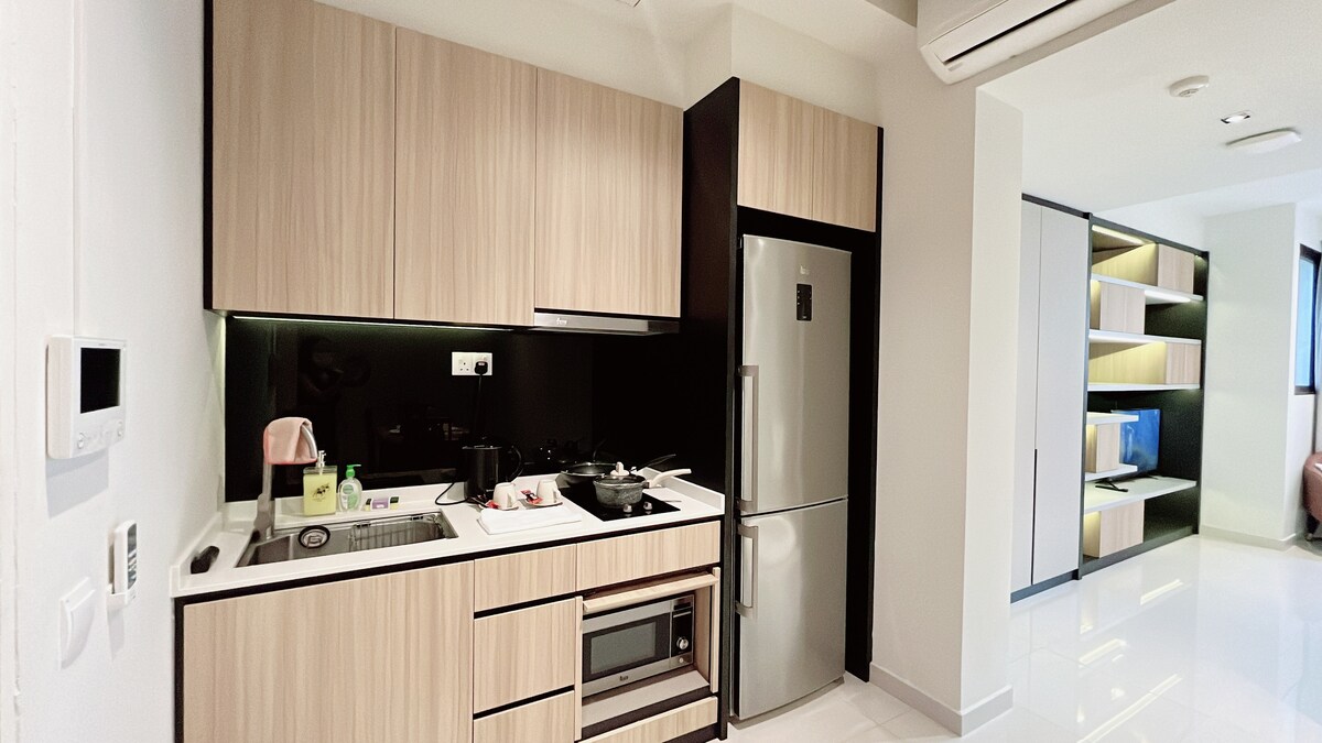 Suite Almas en Puteri Harbour El espacio - Sala de estar: isla de bar, mesa de centro, juego de sofá. - Dormitorio con cama tamaño king, armario, TV, secador de pelo,wifi. - Isla de barra y sillas - Cocina: nevera, ollas y sartenes, cocina de inducción, hervidor de agua, lavadora. - Baño: ducha con gel de baño y champú, toalla (2 huéspedes). Con elementos básicos y artículos de cocina básicos, te sentirás como en casa lejos de casa.