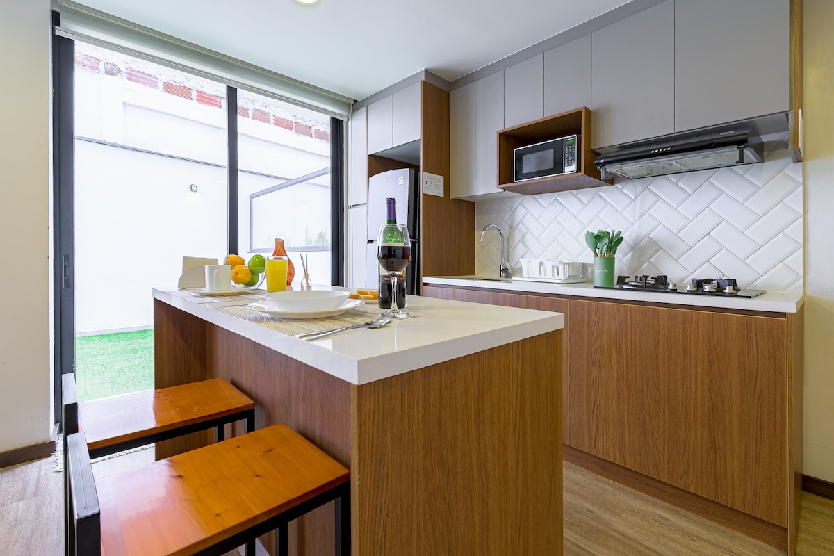 A spectacular brand new Suite located in the best neighborhood of Cuenca "El Vergel". The suite has a Queen size bedroom, 1 full luxury bathroom, spacious equipped kitchen and also a work area equipped with the best internet speed. The surroundings of the suite are incredible, river, parks, gastronomic area, bakery, stadium, city center, historic center, university, Clinics, College, Banks all within a radius of 500 meters.
