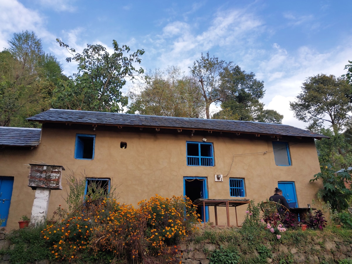 > Escape to Birdsong 🕊 > Wake up to Himalayan whispers, sip chai on a sun-drenched rooftop, and let the peace of the mountains wrap around you. A warm earthen house nestled in a quiet village. We are a family run homestay. As guests, you can also have access to our kitchen and/or ask fresh home cooked meals whatever is being made for the family (which will be charged). On request, guests are also welcome to use the washing machine in our house - depending on availability/feasibilty.
