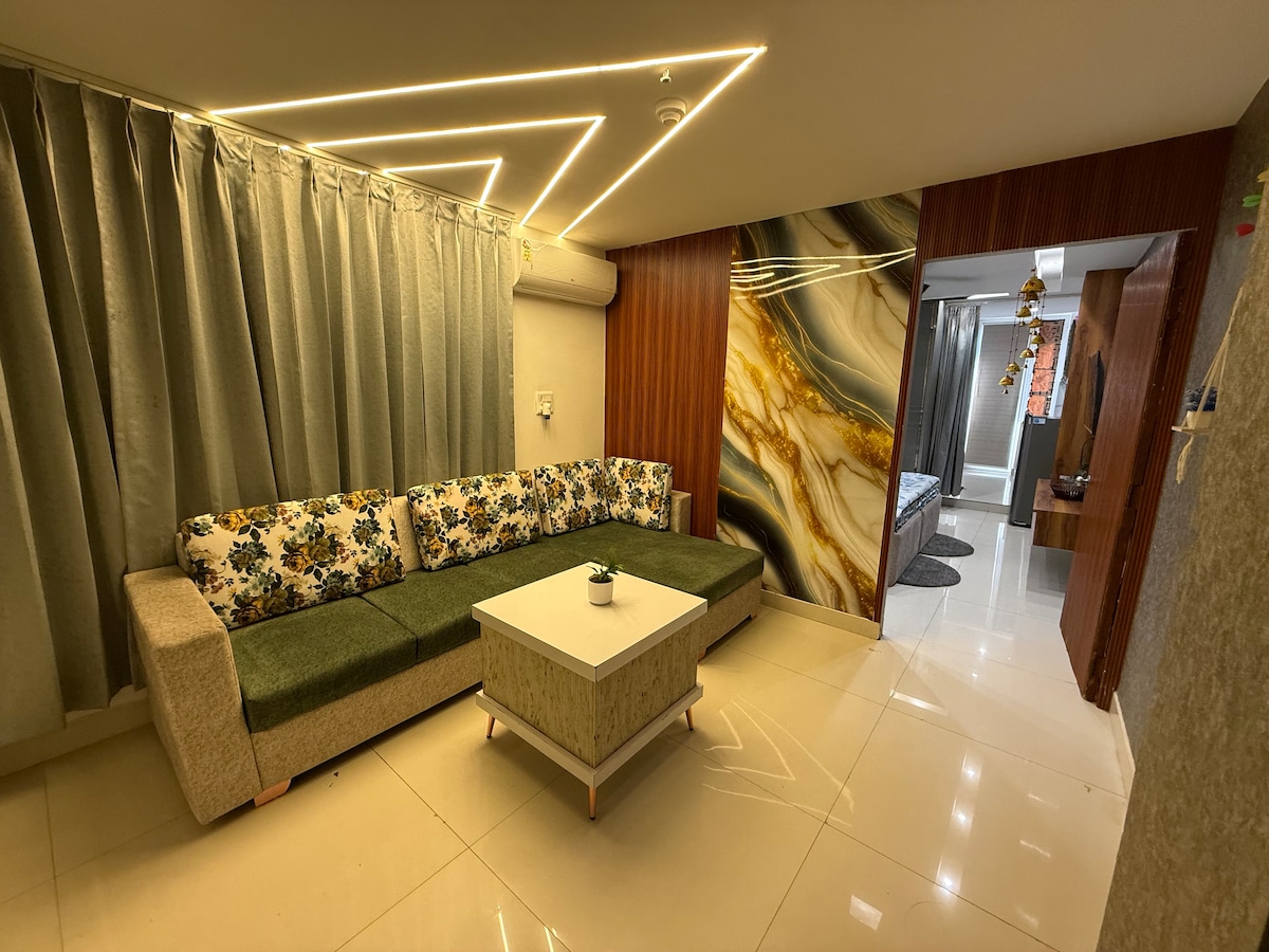 ❌No para fiestas❌ Moderno 3BHK - Amplia sala de estar • 3 habitaciones cómodas. • Cocina totalmente equipada • Baños limpios y modernos. ⭐ LAS PRESTACIONES (8:00 a 20:00) Los huéspedes tienen acceso a una piscina COMPARTIDA, gimnasio, teatro, juegos y otras prestaciones, como mesa de ping-pong, bádminton, carrom, mesa de billar y hockey de aire. 🗺️ UBICACIÓN Ubicada cerca de la autopista Chd-Delhi, la propiedad es: • A 10–15 minutos del aeropuerto de Chandigarh • Cerca de centros comerciales. • Invitados a bodas que asisten a funciones en Tri-City.