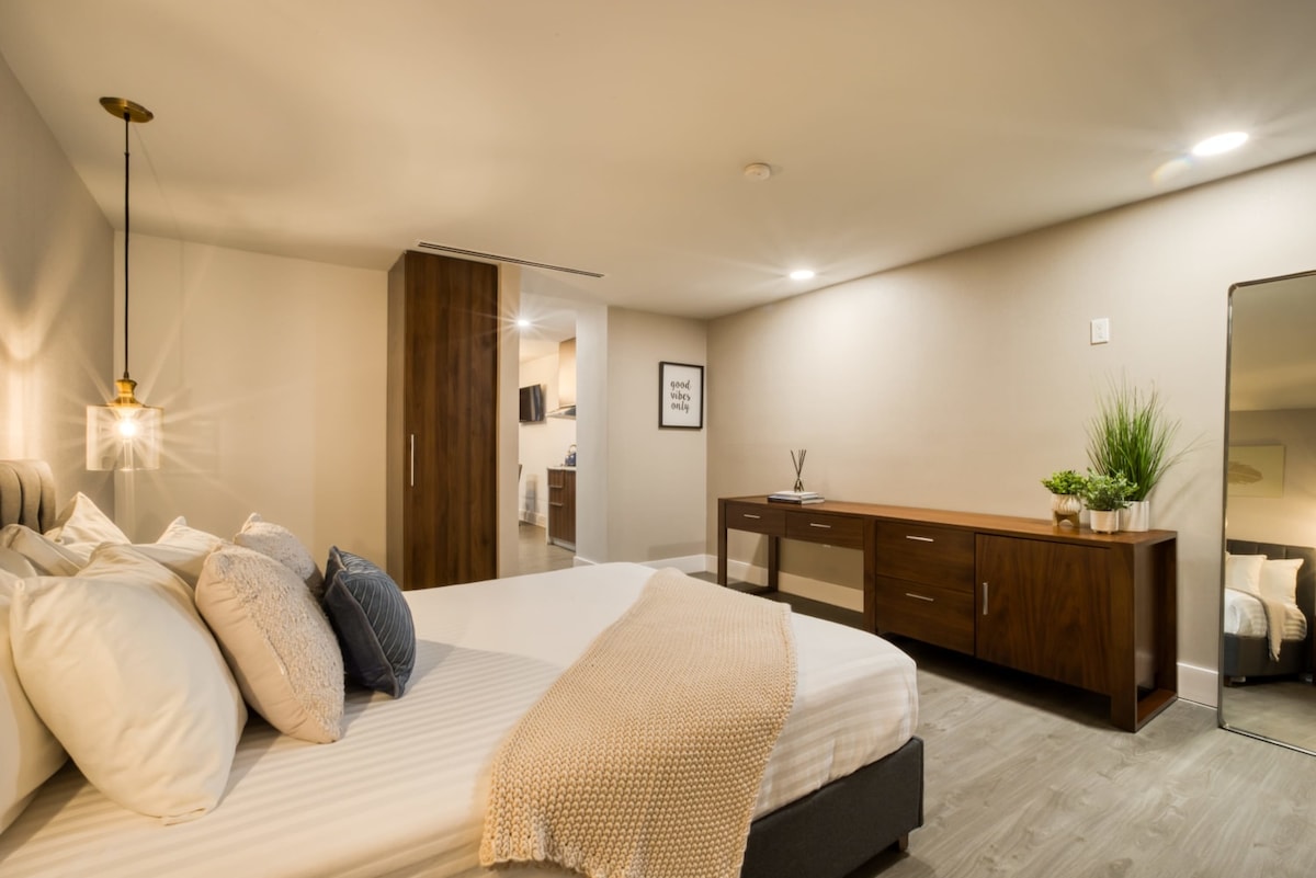 Disfruta de una experiencia con estilo en este alojamiento ubicado a 10 min del cruce internacional en auto, a 10 min de la zona turística caminando. Con vistas al centro de Tijuana. Cercano a cafés y restaurantes de la zona. Cómodo y seguro para caminar, con seguridad interna las 24 horas. El departamento cuenta con dos balcones y excelente iluminación, ventanas de piso a techo con persianas blackout para más control de la iluminación.
