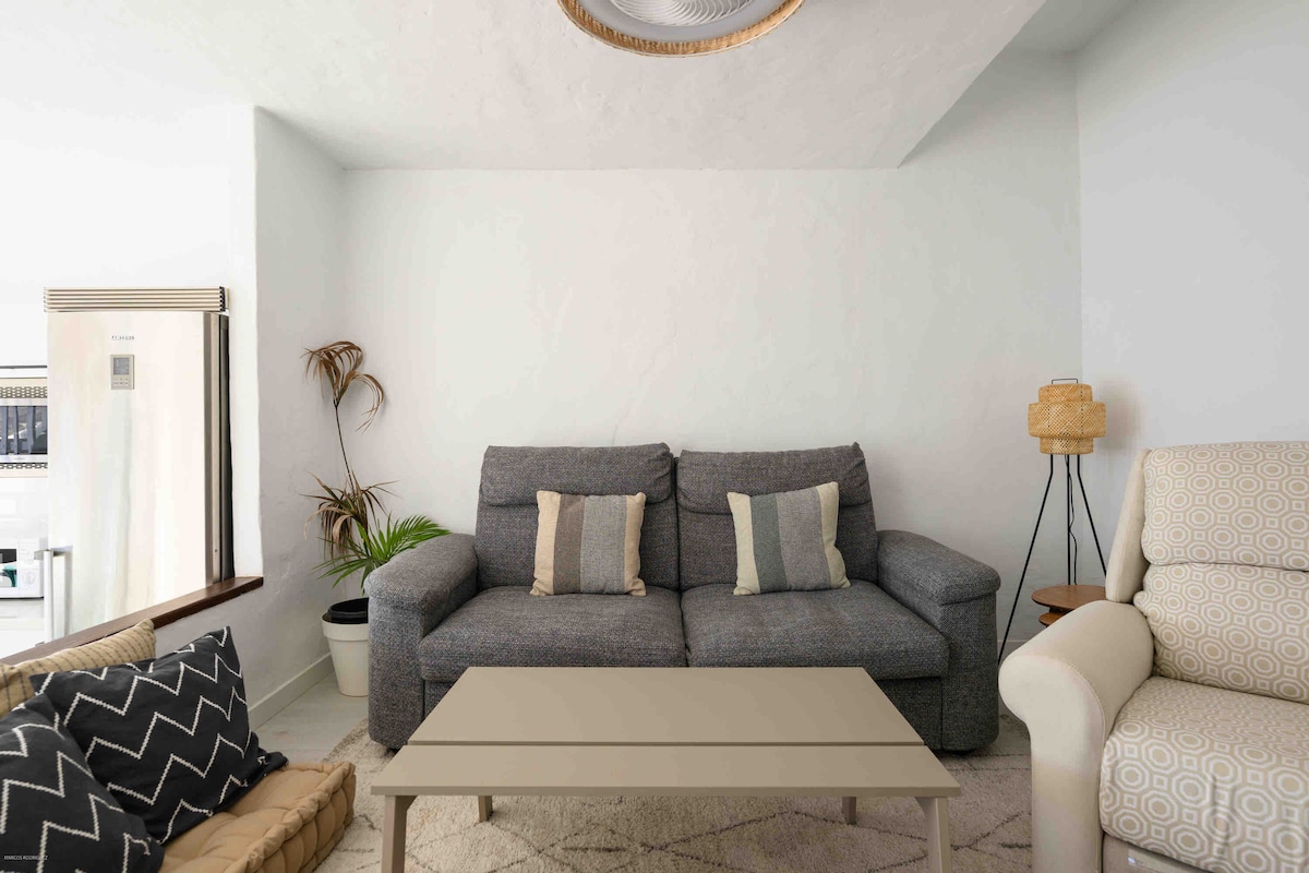 Un precioso apartamento de diseño, recientemente renovado con con impresionantes vistas de atardecer sobre el Océano desde su terraza. Primera línea al mar. Después de un largo día en la naturaleza, descansa en la cama King size (180x200cm) ----- A lovely apartment recently renovated with stunning views of the sunset, first line over the ocean from the terrace. Relax while reading, eating, or doing yoga. After a long day in nature, rest on the King size bed (180x200cm)