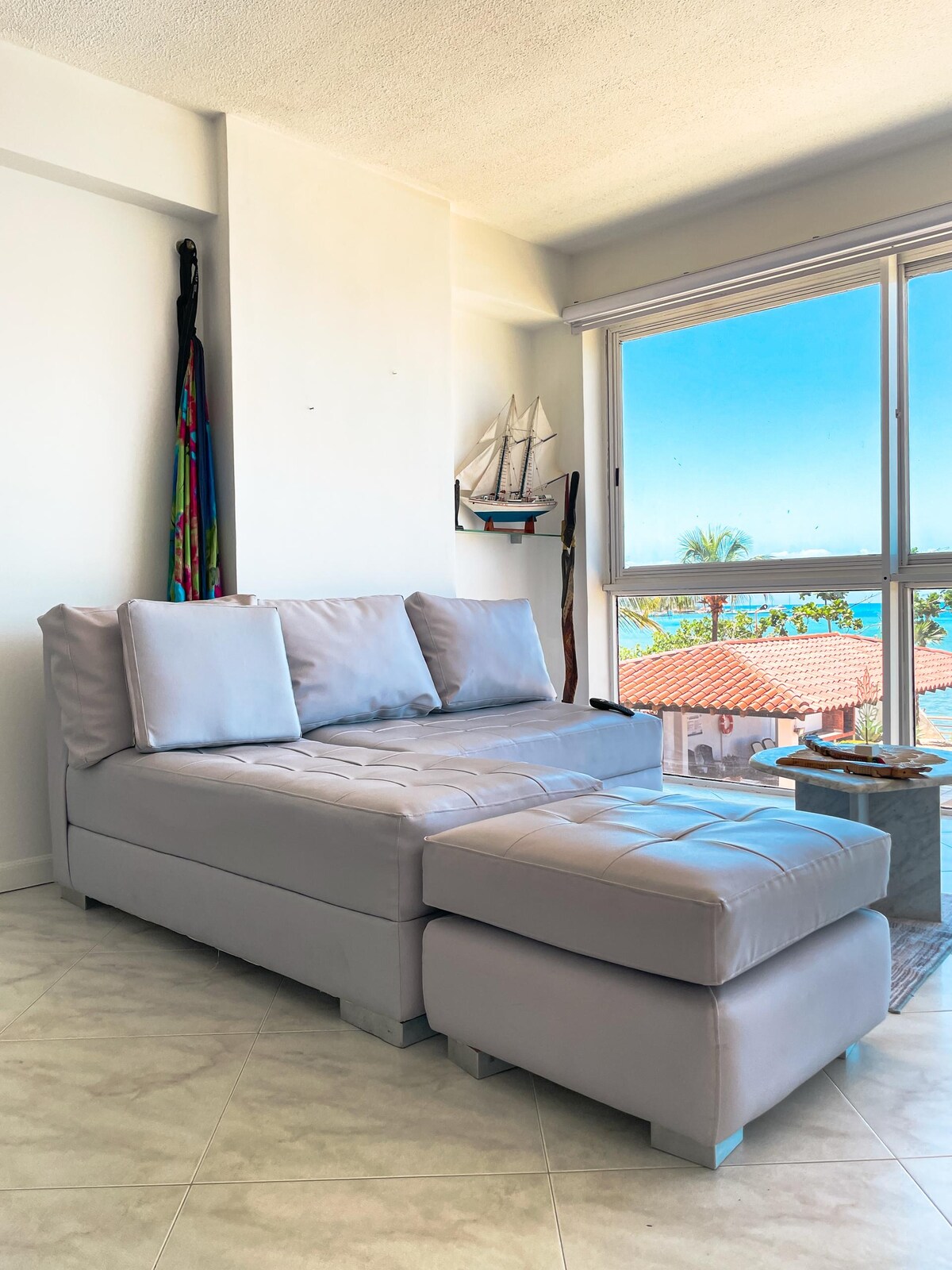 Ven a la isla, relájate y descansa en este apartamento cómodo y tranquilo; a pocos pasos de la Playa Bayside y del centro comercial La Vela, pero sobre todo tiene una espectacular vista al mar con los más hermosos amaneceres y atardeceres.🏖️ El apartamento cuenta con WiFi, Smart TV, aire acondicionado nuevo, cocina con utensilios, cafetera prensa francesa, nevera, toallas, sábanas y jabón de baño. El conjunto es muy tranquilo y tiene muy buena piscina y estacionamiento.