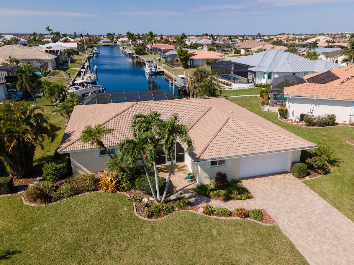 Villa Capri es una casa recientemente remodelada ubicada en el canal de Punta Gorda Isles. Con su espaciosa distribución, impresionantes vistas, muelle privado, piscina de agua salada climatizada y lanai, es el lugar perfecto para relajarse y relajarse con tus seres queridos. Un paseo de 30 minutos a pie o de 10 minutos en bicicleta (¡bicicletas incluidas!) te llevará a Fishermen's Village para cenar o comprar de manera informal o elegante. Es fácil llegar en coche a Villa Capri, con aeropuertos cercanos, servicios y una playa local.