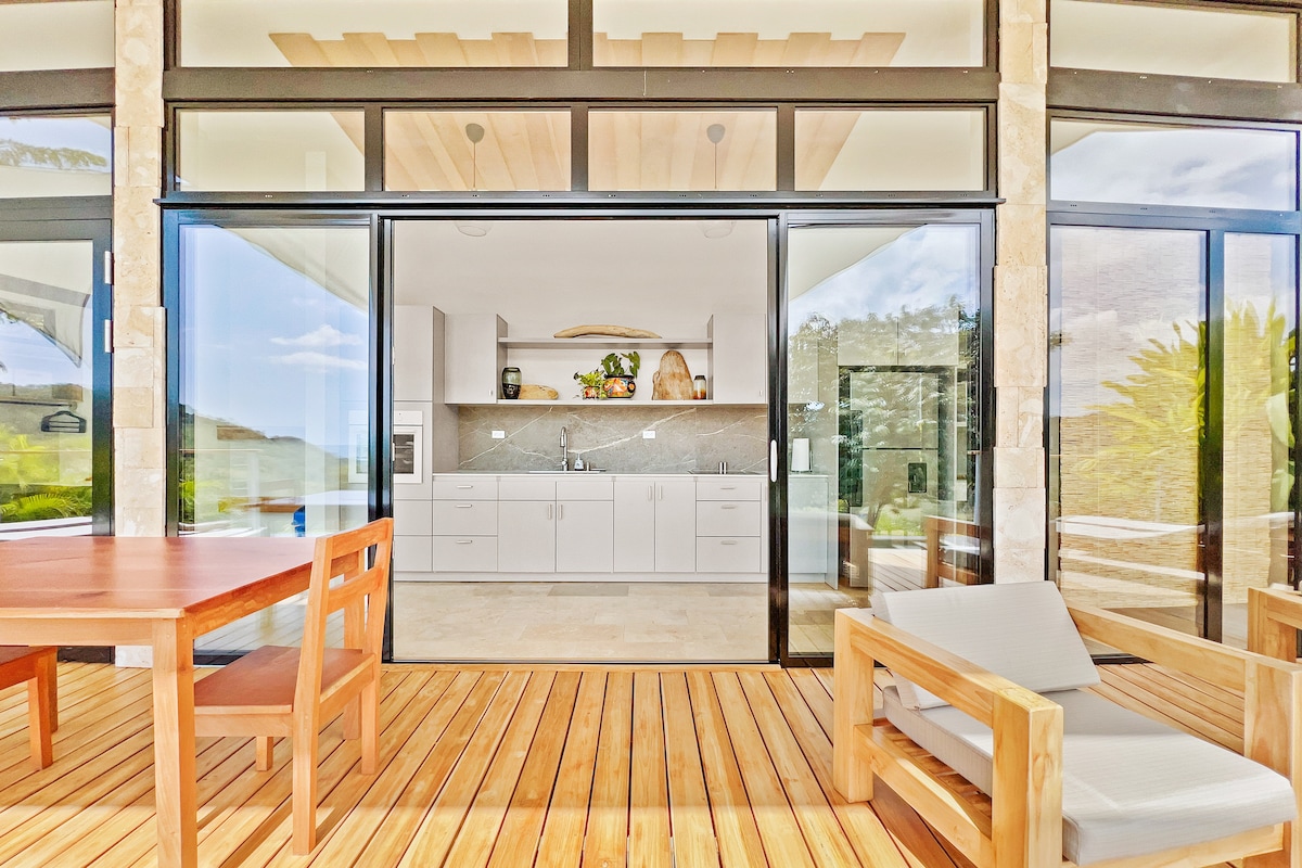 Una suite de lujo privada situada sobre Mal País en la península de Nicoya de Costa Rica. Vistas panorámicas de la costa de Santa Teresa y de la selva desde todos los espacios. Piscina de inmersión con calefacción solar, ducha interior y exterior, cocina gourmet y diseño tropical refinado. Ideal para escapadas románticas, lunas de miel y retiros en solitario. Conectividad de fibra + Starlink. Conserje y chef privado disponibles.