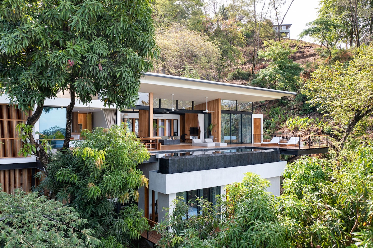 Esta villa de estilo moderno de nueva construcción es un lugar perfecto para relajarse y disfrutar de las impresionantes vistas al océano y a la costa. Este moderno diseño abierto con puertas plegables totalmente abiertas te permitirá disfrutar plenamente del paraíso, pero con la comodidad de tu hogar. Nuestra villa se encuentra en la cima de la montaña y solo con acceso privado cerrado. Nuestros cuidadores de la propiedad viven en la propiedad para garantizar que nuestros huéspedes reciban el mejor servicio y seguridad y estén disponibles si es necesario en cualquier momento. ¡Te damos la bienvenida al paraíso!