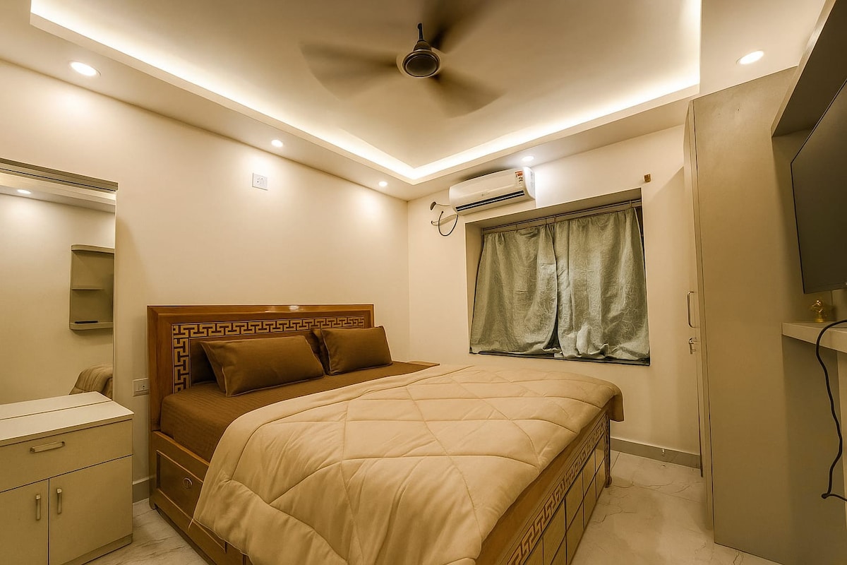 Alojamiento familiar acogedor con aire acondicionado 1bhk de autoservicio