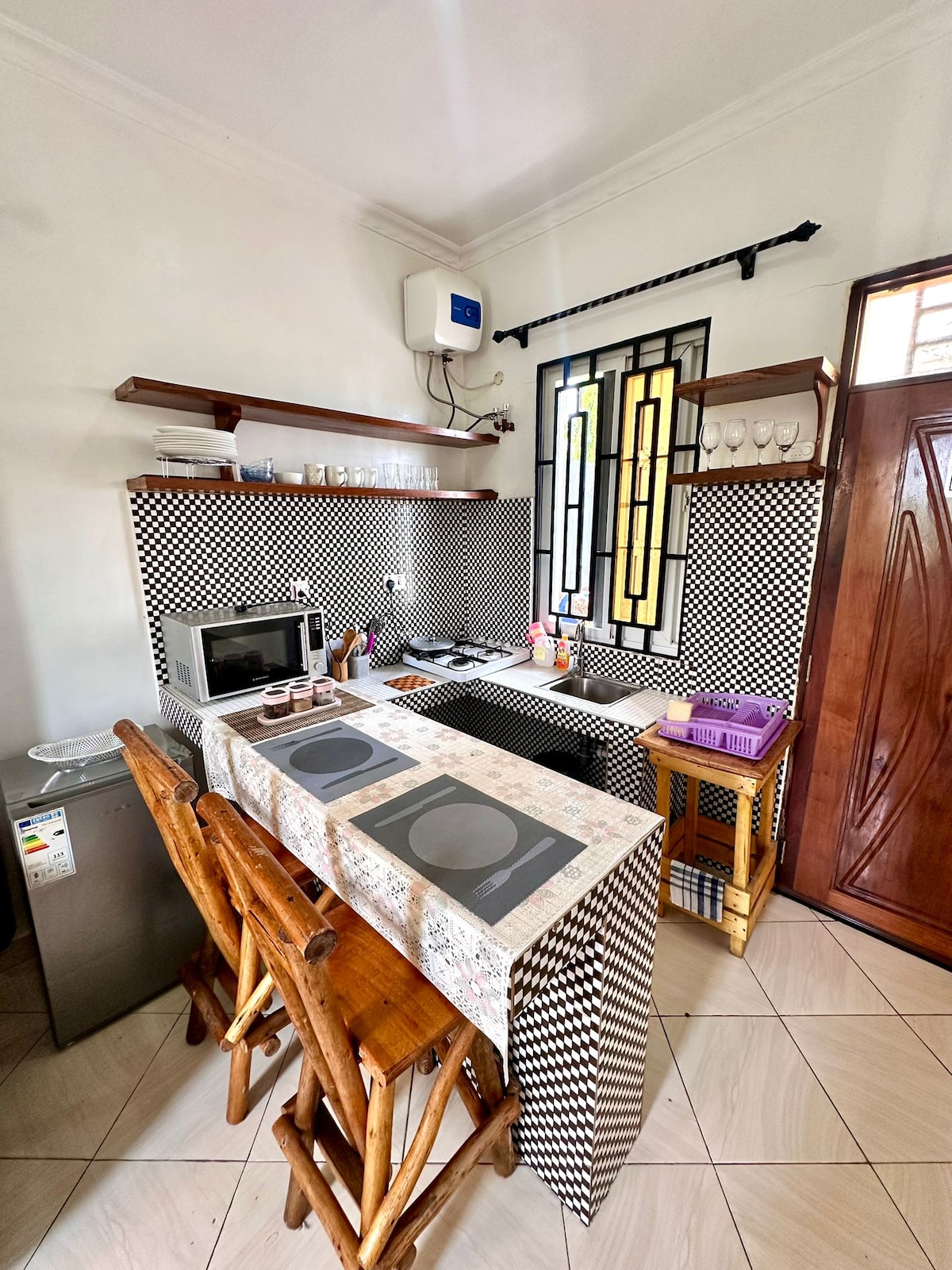 La "cabaña de playa Bweni" es una tranquila y hermosa cabaña en la playa. Nuestro bungalow se encuentra justo en la playa, a 10 m del mar, con terraza privada y baño privado. Las dos camas tamaño king tienen mosquitera. Hay un ventilador en la habitación. El desayuno con té y café está incluido y todos los días preparamos el almuerzo y la cena en función de lo que está disponible en el pueblo y lo que nos traen los pescadores. Tenemos 1 gato y 2 perros, todos muy adorables. Hay electricidad y agua limpia.