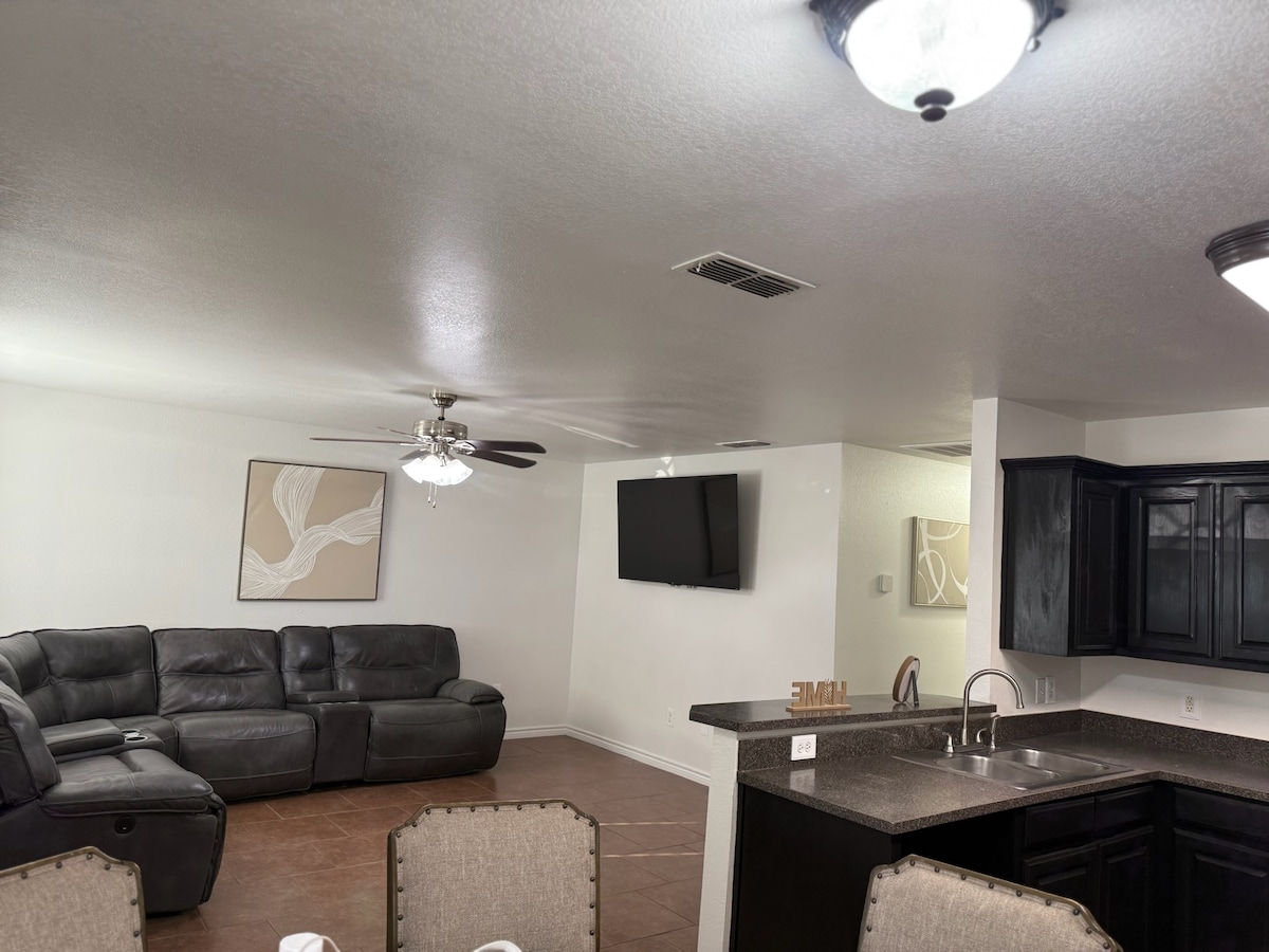 Único apartamento a estrenar de 3 dormitorios y 2 baños ubicado en una zona tranquila y silenciosa de Odessa. Habitaciones espaciosas con TV de 75 pulgadas en el salón y TV de 65 pulgadas en el dormitorio principal. Camas modernas con puntos de carga para teléfonos y portátiles. Cuenta con espacio de trabajo dedicado y modernos escritorios de oficina con alturas ajustables eléctricamente. Amplio patio trasero con césped limpio y parrilla para barbacoa.